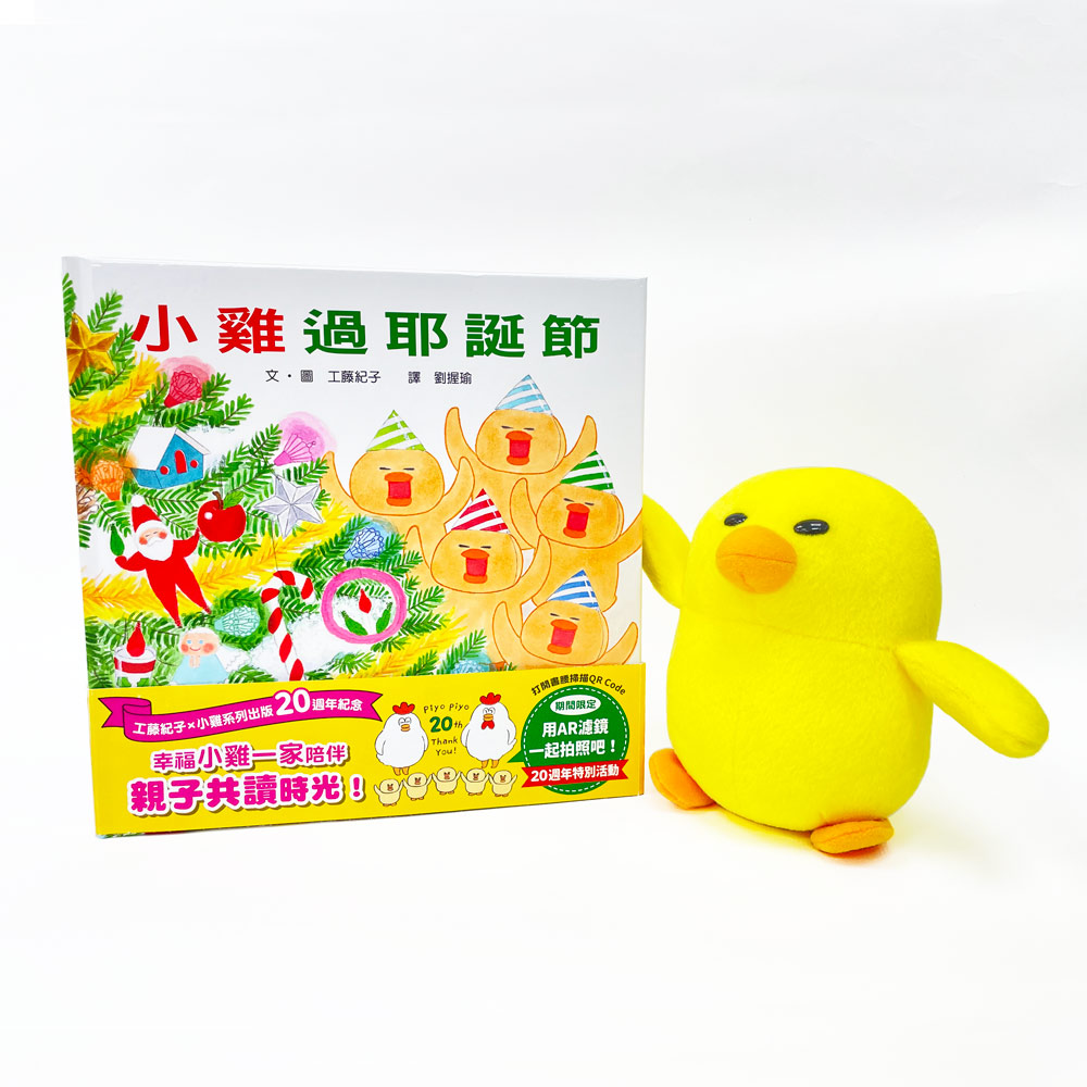內容簡介 小雞系列出版20週年超人氣寶寶書+專屬於你的小雞讓小雞一家陪伴我們度過更多日子吧!全臺唯一,獨家正版授權! 本套組合包含《小雞過耶誕節【20週年特別紀念】》、【工藤紀子獨家授權】小雞短絨毛玩偶。耶誕節要到了,小雞們都好期待!他們努力當乖寶寶,希望耶誕老公公會來家裡給他們驚喜,小雞們的願望能成真嗎?快抱著專屬於你的小雞玩偶,一起親眼確認吧!套組內容《小雞過耶誕節》人氣寶寶書NO.1和小雞一起向耶誕老公公許願,過一個最歡樂的耶誕節! 耶誕節要到了,小雞們都好期待! 他們努力當乖寶寶,希望耶誕老公公會來家裡給他們驚喜,小雞們的願望能成真嗎?【小雞短絨毛玩偶】 日本超人氣繪本作家工藤紀子,《Piyo Piyo》系列繪本最吸睛的經典角色──小雞,獨家絨毛玩偶亮相!還原度百分百,最可愛的小雞跑出書本,來到現實世界中! 請小心!細緻柔軟的觸感讓你一摸就愛上,一旦擁抱就不想放手!圓滾滾的身體,配上扁扁的小腳丫和黑黑圓圓的豆豆眼,不禁讓人想大喊:這不就是小雞本雞嘛! 喜歡小雞的大小粉絲們,絕對不要錯過將小雞帶回家的機會!【本書關鍵字】工藤紀子、小雞、節慶、親情、願望【本書資料】有注音適讀年齡:0~6歲親子共讀,6歲以上自己閱讀【本書特色】《小雞過耶誕節》1. 一本適合幼齡孩童認識耶誕節的寶寶書以可愛的畫風讓孩子體驗耶誕節的氣氛!有耶誕市集、裝飾耶誕樹、耶誕大餐、耶誕禮物等,是適合幼齡孩童認識世界的入門繪本。2. 回顧一年,並許下願望想一想自己今年有沒有像小雞一樣當個乖寶寶,或是有沒有什麼地方要改進呢?3. 附贈有趣的許願小卡本書特別設計精美許願小卡,看完書後,是不是也想要向耶誕老公公許願呢?將許願襪和小耶誕樹剪下,掛在房間向耶誕老公公許願吧! 【小雞短絨毛玩偶】1. 日本超人氣繪本作家工藤紀子獨家授權全臺唯一,《Piyo Piyo》系列日本獨家正版授權,品質有保證。2. 還原度百分百經典重現繪本角色,從書中跑出來的小雞!3. 最舒服的親膚材質質地細膩柔軟,讓人愛不釋手。4. 細密短絨毛不怕啃咬,揉捏也不變形。5. 最Q彈的手感圓圓一隻捏下去馬上回彈,從內到外軟萌加倍!6. 最適當的大小如同現實中小雞的大小,讓小雞玩偶更加栩栩如生!商品詳細資訊l 材質:聚脂纖維l 14×14×10cml 重量:85 gl 適用年齡:3歲以上注意事項1. 因拍攝略有色差,圖片僅供參考,顏色請以實際收到的商品為準。2. 因個人認知不同,商品丈量誤差約在±2cm;重量±5g以內。3. 本產品需在成人陪同下使用,並遠離火源,不適合3歲以下兒童且應避免吞食造成窒息。4. 洗滌時,水溫請低於30度C。請勿機洗。 5. 建議自然晾乾。