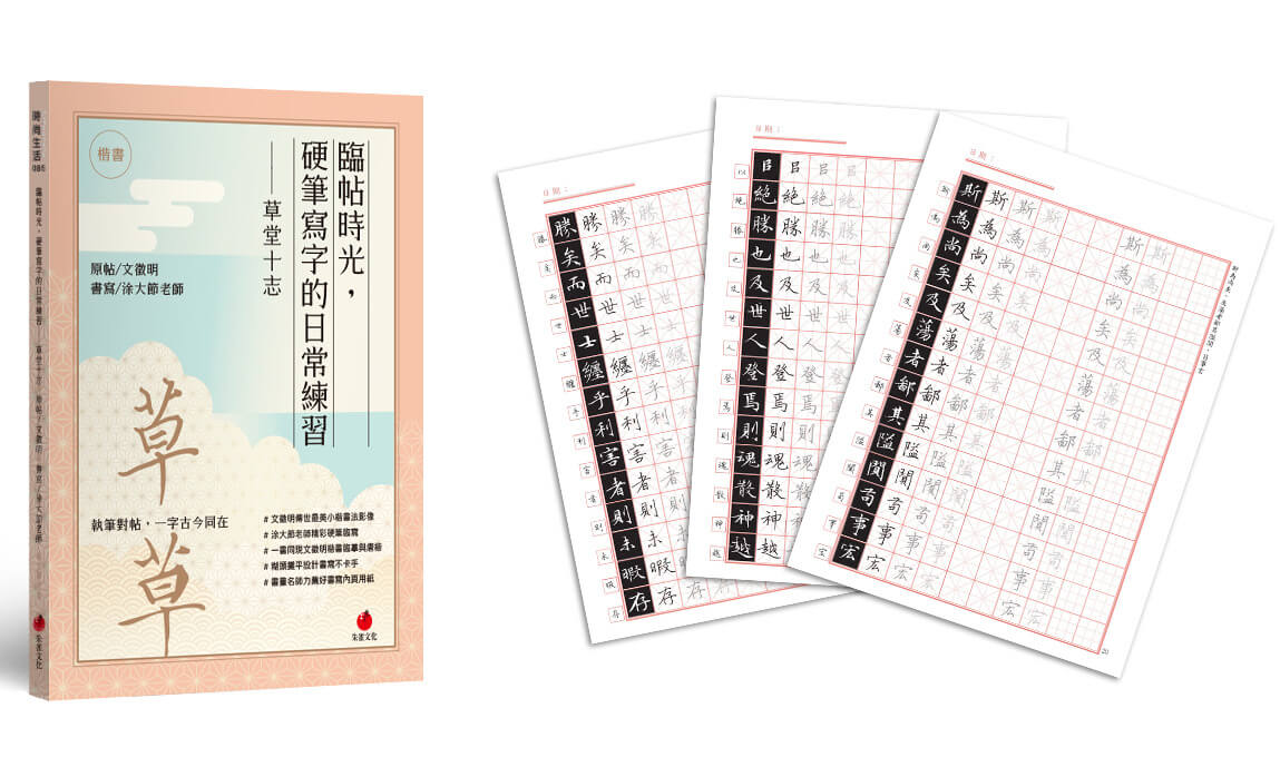 內容簡介 臨帖,能養心靜氣、培養專注力,美化字跡,感受文化之美。本書的企劃宗旨在以現代人常用的硬筆,將經典碑帖走進日常,讓書寫不只是文字,而是一場與古人的靜謐對話;期許在快節奏的生活中,透過一筆一畫,找回專注與平靜,感受字裡行間的呼吸與溫度。硬筆書寫貼近日常,卻依然承載書法的美與靈魂,願每一次書寫,都是心靈的調息;願這一系列碑帖,成為你生活裡的一方靜土。 本書為〈草堂十志〉原帖臨摹練習本。是由涂大節老師硬筆臨寫文徵明原帖,並同時以唐楷書寫全文,讓讀者能在一個頁面裡,看到文徵明原帖字跡之美,並透過涂老師的硬筆書寫,逐字臨仿其典雅的形體與精神,化為自身的藝術涵養。 古今文字在結構和筆順均略有不同,本書完整呈現原帖文字,並在每頁最右列上釋文,方便讀者了解原意。原帖中有些字是古字,現今已少使用或不使用,因此在每頁最右列以現今通用文字呈現。 關於〈草堂十志〉:〈草堂十志圖〉的作者是唐朝著名畫家盧鴻。盧鴻因拒絕當官,所以隱居在嵩山的草堂。他取這裡的十處景致:草堂、枕煙庭、羃翠庭、樾館、洞元室、倒景臺、期仙磴、滌煩磯、金碧潭,以及雲錦淙等為主題,繪製十幅風景圖,每幅圖側都題詠文字,在歌詠自然景色的同時,也讚美隱居生活的恬適。 文徵明是明代著名的書法家,尤其擅長小楷和行書。七十歲時,有感於〈草堂十志圖〉的隱居生活哲學與自身心態契合,因此以小楷書寫每幅圖側的題詠文字,完成〈草堂十志〉,堪稱是他畢生代表作之一,更有歷代最美小楷的美譽,是許多愛好書寫者臨帖的經典範本。此外,文徵明楷書筆畫結構工整且舒展、運筆比較簡單,非常適合小楷初學者入門。