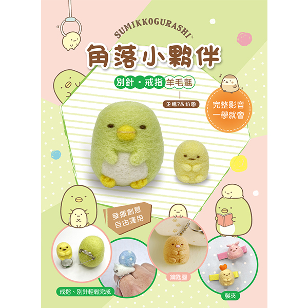 商品描述 | 角落小夥伴別針戒指羊毛氈: 企鵝? &粉圓 (附羊毛氈超值全材料包套組):角落小夥伴•別針戒指羊毛氈【企鵝?&雜草】超值全材料包套組材料工具一次到齊,打開立即戳,完整影 |