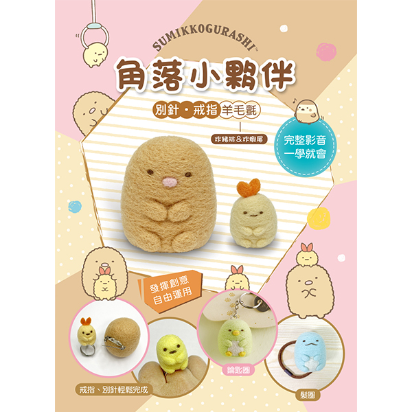 內容簡介 角落小夥伴•別針戒指羊毛氈【炸豬排&炸蝦尾】超值全材料包套組材料工具一次到齊,打開立即戳,完整影音教學,新手也能一次學會!圈粉無數的角落小夥伴,Q萌模樣療癒人心,只要簡單戳一戳、縫一縫,就能化身成可愛又實用的別針或戒指,時刻陪伴你,為日常生活增添滿滿幸福感!影音教學隨掃即看,原寸版型方便對照,初學者也能立即上手,快來一起戳出專屬自己的角落小夥伴吧! 商品特色:【羊毛氈超值全材料包套組——炸豬排&炸蝦尾】 專為初學者量身打造的羊毛氈體驗組,內含完整的材料及工具,以及QRCode全程示範影音教學,一打開就能立即享受DIY手作樂趣!★高級純羊毛5色特選柔軟手感極佳、好塑形的進口羊毛,能充分展現細節巧思。★好塑形金屬戳針×2支嚴選羊毛專用戳針,適用於塑形、細部表現與修飾,讓成品更有質感。★羊毛氈專用工作墊×1個高密度珍珠泡棉工作墊,可緩衝戳刺時的力量,防止戳針斷裂。★可調式金屬戒台×1個可自行調整依戒圍大小,輕鬆不費力。★安全別針×1個精選可縫、有保險扣設計的別針,安全不易掉。★全彩圖解說明書×1份原寸圖示方便對照成品大小,戳刺塑形更好上手。★QRCode完整影音教學從捲毛、戳刺、塑形到縫製,全程影音示範,保證一看就懂。※材料包內容物,請以實際商品為準