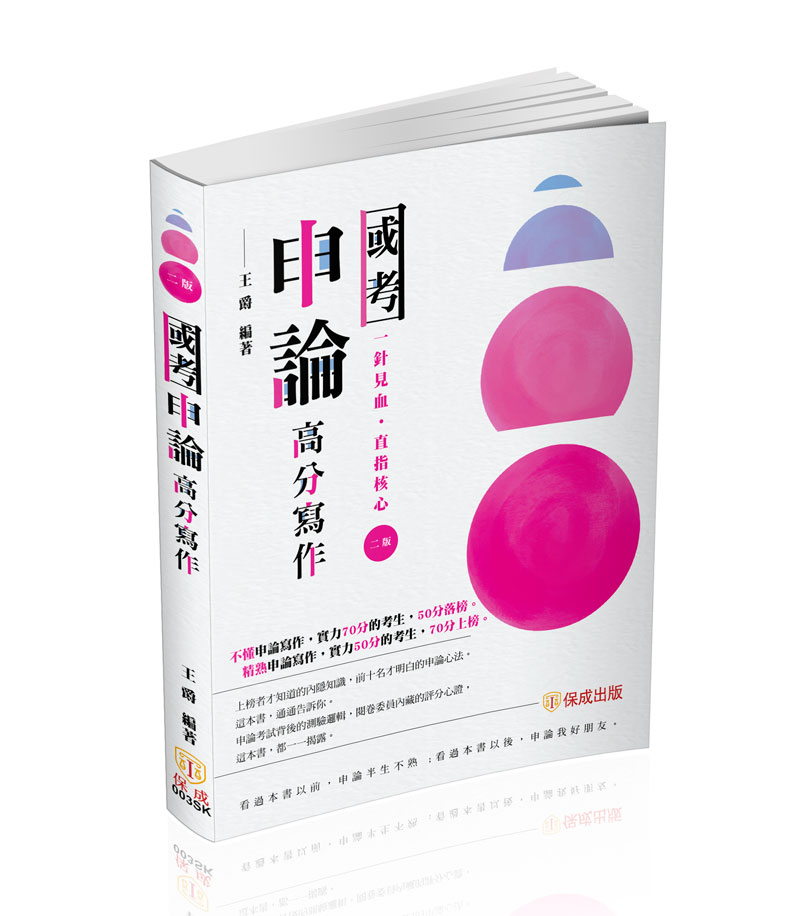 商品描述 | 國考申論高分寫作: 國考各類科考試 (第2版):適用對象欲報考國家考試者。使用功效幫助讀者於準備國考及申論寫作時,能抄捷徑並以少勝多、以弱剋強,取得投資報酬率最高的國 |