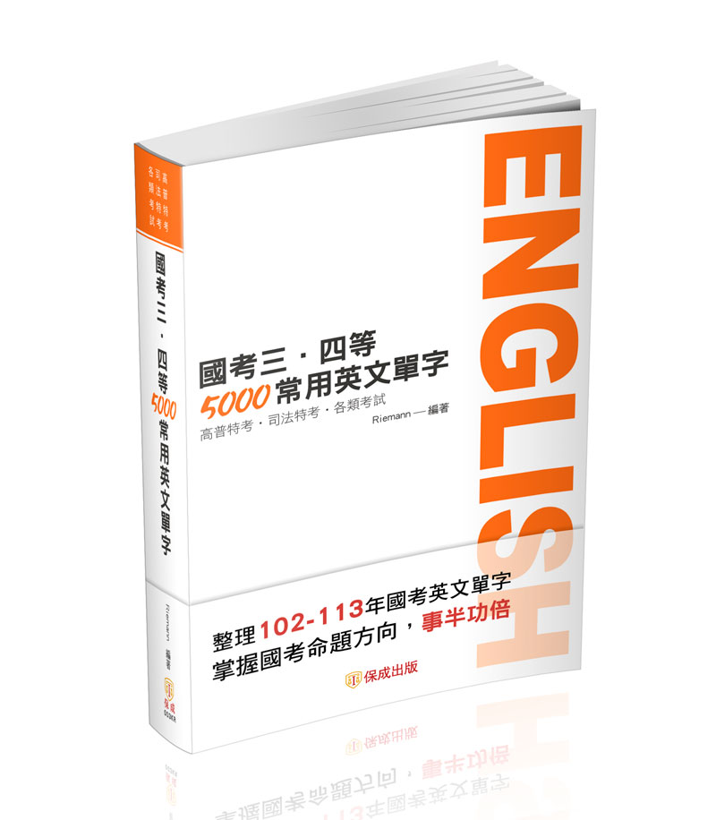 商品描述 | 國考三、四等: 5000常用英文單字 (2025 高普特考 司法特考 各類考試):適用對象參加國家考試的考生使用功效熟練國家考試的英文單字改版差異新收錄102-113年公職考試英文字 |