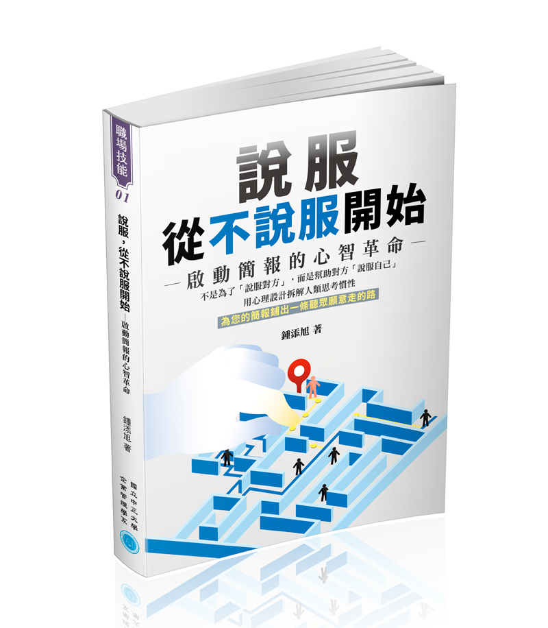作者介紹 鍾添旭作者擁有電機工程學士、管理碩士與企業管理哲學博士學位,三十餘年來,他融合工程、行銷、管理與創業經驗,並結合行銷學、管理學,以及心理學,專注於探索提升溝通影響力的策略。作為企業培訓講師,他與瓦克、惠普、飛利浦、通用電氣、思科、美強生、拜耳、達梭、宜家、巴黎萊雅等上百家國際企業合作,持續為企業與個人打造高效成長方案。"