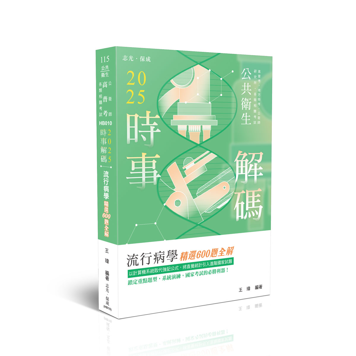 | 書名 / | 時事解碼: 流行病學精選600題全解 (2025 高普考 地方特考 公衛師 研究所 各類相關考試) |