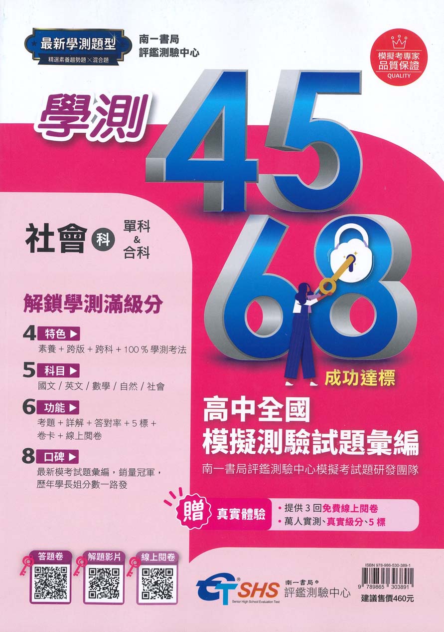 | 書名 / | 南一高中 學測4568模擬測驗試題彙編+解析本: 社會科 (115年 2冊合售) |