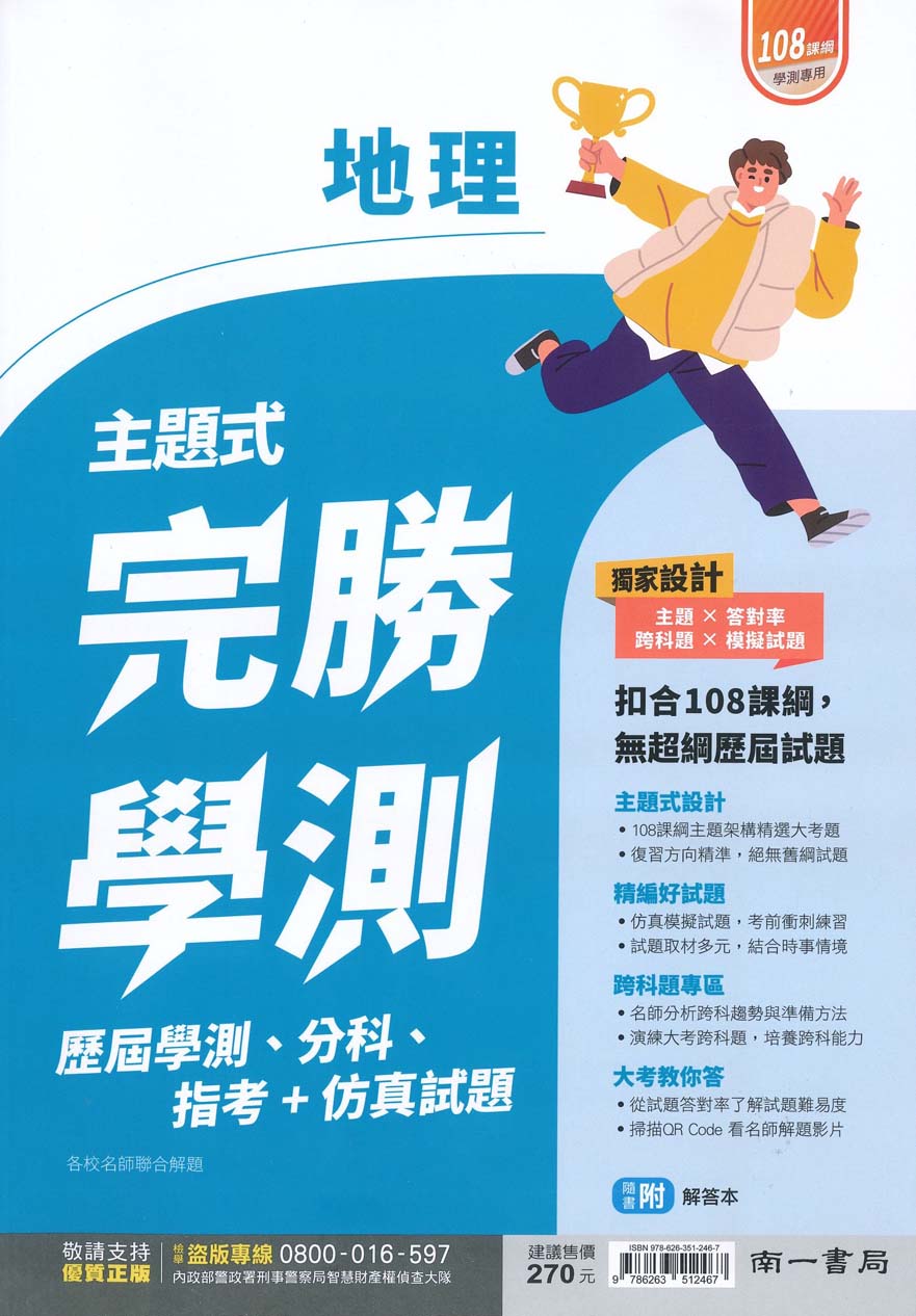 | 商品描述 | 南一高中 完勝學測主題式歷屆試題: 地理 (115年):1主題式單元精編符合108課綱之歷屆學測、指考、分科測驗試題,依不同主題進行分類,練習更方便每題皆附答對率學測題附真 |