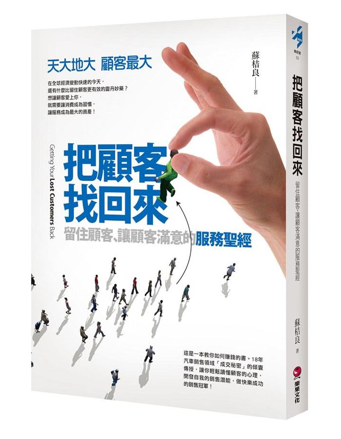 | 商品描述 | 把顧客找回來: 留住顧客、讓顧客滿意的制勝之道:天大地大,顧客最大;在全球經濟變動快速的今天,還有什麼比留住顧客更有效的靈丹妙藥?想讓顧客愛上你,就需要讓消費成為 |