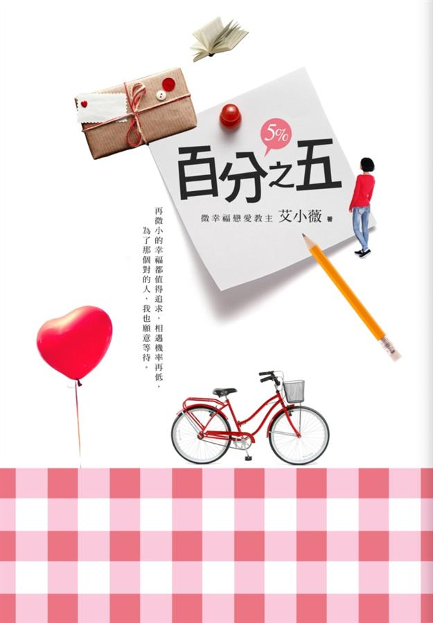 內容簡介 故事背景取材大學校園環境,描寫大學三大必修學分之一的戀愛學分,滿足國高中生讀者對於大學愛情生活的憧憬,對大學生讀者而言,同感度極高,閱讀毫無門檻。劇情中的微甜氛圍,讓讀過的人,都想快點找到屬於自己的百分之五,立刻展開一場粉色戀愛!微幸福戀愛教主艾小薇,輕甜魅力代表作創造三十萬人次超高點擊率,上千網友齊聲讚好!突發心跳停止的一分鐘內,立即施予CPR+AED,心跳回復正常的成功率高達90%;指考錄取率超過80%;70%的大學生承認曾經作弊;大四生的延畢率也有19%。但是,遇到生命中最獨特的那個人,和他成為戀人的機率卻只有──5%。剛成為大一新鮮人的小莫,和所有新生一樣,滿心期待與直屬學長姊見面,沒想到百聞不如一見,見面不如懷念,初次見到學長,他頂著一頭亂髮,臉上掛著黑框大眼鏡,身穿她嚴重懷疑是睡衣的T恤、迷彩七分褲,還有一雙拖鞋……十足的大災難,喔不,是大宅男!壞的邂逅,是無緣的預告,當小莫以為和宅男學長的緣分大概只比路人好一點時,卻意外發現學長的祕密。原來,學長不修邊幅的邋遢裝扮,都是為了隱藏另一個不為人知的身分……聽說,遇到生命中最獨特的那個人,和他變成戀人的機率是百分之五。那麼,學長會不會就是她的百分之五呢?