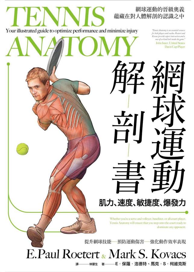內容簡介 網球運動的晉級奧義,蘊藏在對人體運動的認識之中強化肌力、速度、敏捷度、爆發力的不二之法。◎近200幅解剖插圖,透視網球&人體運動關聯。◎美國AAHPERD執行長;美國網球協會經理畢生絕學。◎10大章節,提升肌力、速度、敏捷度、爆發力,強化動作效率表現!◎以清晰解剖圖呈現每個動作的目標肌群,告知如何調養、修復身體,預防運動傷害。◎系統訓練方式有助於預防過度訓練、過度使用,減輕並從運動傷害中逐步復原。第一章:深入淺出地概述網球運動的體能要求、場地表面與打法類型的關係、所有網球揮擊動作的肌肉解析以及設計訓練課程的生理考量。第二~七章:有系統地介紹人體各大主要部位在打網球時所扮演的角色,強調肌肉的講解及其與揮擊動作之間的關聯,並且針對各個部位提供訓練運動。第八~十章:側重在身體旋轉的重要、動作技巧以及傷害預防。過去30年間,網球最劇烈的改變大概都是因球拍技術的革新而起。拜新的訓練方法所賜,其適宜的年齡層更加寬廣,從10歲至90歲的民眾皆可由網球運動得到健康、體能、協調及心理上的獲益。然而,優秀的網球員講求肌力、彈性、爆發力、耐力以及速度,唯有能夠以完整的活動範圍進行所有需要的動作──理想的移位、揮擊的執行,才能習得正確的網球技巧,而這一切都奠基於良好的肌肉系統之上。美國網協身為美國網球運動的最高領導機構,旗下兩位博士以權威的學理及實際的經驗為依據,提供一把造就優秀網球員的鑰匙。正確的技巧與肌肉的鍛鍊兩者相輔相成,為了清楚辨識訓練的益處,書中藉由各個動作的肌肉運用插圖,你這些基礎訓練所對應的網球場上動作。並以圖示標註訓練後將有所獲益的揮擊,包括落地擊球(正、反手拍)、發球及高球、截擊(正、反手拍)三種。你可用本書安排一套完整的運動員訓練計畫,超越一般的訓練運動,來到網球場上深入各種競技挑戰,訓練自己姿勢呈現極度伸展時對身體的控制、移位技巧,強化身體的穩定性。你也將走出球場,學習減輕並從運動傷害中復原的各種動作。《網球運動解剖書》所談各種增進肌力、動力、體能和技巧的訓練,跟籃球、跑步、游泳、舉重、健力、健美選手的訓練並不相同。訴求是提升網球表現,是為了特定競技目標進行鍛鍊,利用全身、局部性等訓練來提升身體素質,達到增進體能及表現的目標。是所有珍視網球技術及其運動精神者──包括球員、教練、訓練員及球迷不可錯過的最佳讀物,看完後你會發現,任何運動的晉級奧義,都蘊藏在對人體運動的認識之中。