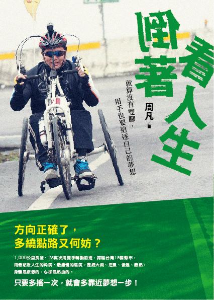 內容簡介 內容簡介:本書版稅將全數捐助【屏東家扶中心】就算沒有雙腳,不能奔跑,我還有雙手可以倒著看人生,追逐我的夢想。 在每個人的生命中,老天爺都出了一道必須完成的功課。我也曾怨恨老天爺,為什麼是我得到小兒麻痺?然而,當自己的身心累積太多負面能量時,我發現不僅會傷了自己,也傷害了身邊關心你的親人和朋友。我可以選擇繼續沉淪或改變,但選擇改變是個相當痛苦的決定,因為生命的改變並不是今天做、明天就可以馬上看到成果,而是必須一點一滴慢慢累積。 於是,我開始規劃一系列想要挑戰的極限運動,包括飛行傘、潛水、獨木舟、帆船、手搖三輪車挑戰環島、鐵人三項……。我想征服的不是大自然,而是自己內心的懷疑和恐懼。 其實,剛開始我並不知道自己有沒有能力完成,但是我願意嘗試;一次不成功,再繼續嘗試,直到成功為止。每次挑戰過後,生命好像經過重新洗禮,慢慢找到心中正向的能量。如果一個坐在輪椅上的人都能完成許多夢想,那麼,條件比我好太多的你們,一定也可以。只要面向陽光,就不會看見陰影;只要心裡沒有障礙,那就處處沒有障礙。 每個人看事情的角度都不一樣;站立或倒立,所看到的事物角度也截然不同。當生命遇到問題與挫折時,有些人看到的是障礙,有些人卻看見往前的勇氣。 生命中的每一個挫折都有它的意義。我用我的故事鼓勵偏鄉孩子,環境不會使人放棄自己,只有自己才會放棄自己。我也自創簡單動畫,在網路上分享簡單的生命教育小短片,傳遞最不簡單的力量。看似黑暗無盡的隧道盡頭,一定看得到光亮,只要你願意繼續往前走。 我只看自己擁有的,不看自己沒有的。挑戰極限運動,讓我體認夢想可以不受身體的侷限。我很感謝老天爺讓我擁有一個不是風平浪靜的生命,讓我更清楚我要前往的方向與被賦予的責任,在生命教育中陪伴孩子一起成長。如果現在的你是在谷底,唯一的方向就是努力往上爬。 我是周凡,誠摯邀請你和我一起倒著看人生,享受不設限的生命!