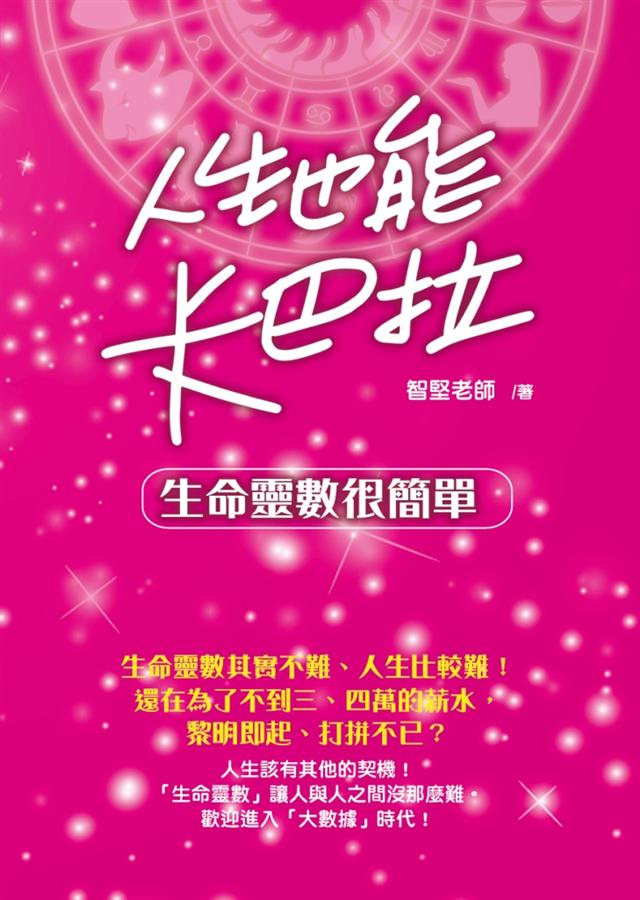 作者介紹 ■作者簡介智堅老師學習西洋文學、主修英文,熱愛中華文化,涉獵卡巴拉生命靈數磁場逾四十年;出版卡巴拉生命靈數系列、運用實戰書刊共八本:樂透天出頭天、天天樂透天、樂透天出頭天(2002年版)、四星彩簽注秘笈、台灣大樂透(2003年版)、台灣大樂透(2004年版)、台灣彩券樂透經(2007年版)、台灣彩券樂透天(2008年版);曾擔任中時晚報特約專欄作家,「年代樂透研究院」固定命理老師,台中全國廣播「命運即時通」現場CALL IN 主持人,也曾多次受邀於民視「頭家來開講」節目,「人生也能卡巴拉〜生命靈數很簡單」是其第九本著作。