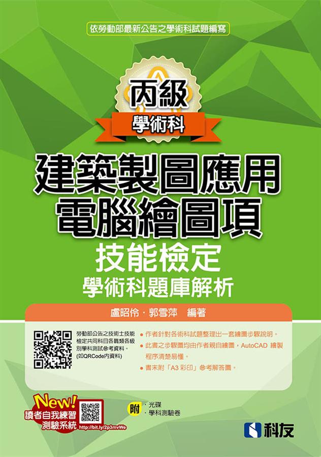 商品描述 | 丙級建築製圖應用電腦繪圖項: 技能檢定學術科題庫解析2018 (附光碟+學科測驗卷):結合作者在建築業界與教育界累計十多年的實務與教學經驗,本書以繪圖指令配合步驟說明圖解 |
