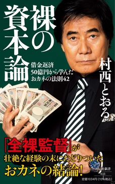 內容簡介 「全裸監督」が会得した、おカネの結論とはAVの帝王・村西とおる。1988年に設立したダイヤモンド映像の最盛期の年商は100億円。豪邸に有名女優を侍らせ、贅沢の限りを尽くした。しかし投資の失敗により、負債総額50億円で倒産する。その後、命すら危うい過酷な取り立て等を経て、借金を完済した。利息のための体を張った〝ご奉仕〟、立ち食いソバ屋経営で知ったカラクリ、借金を踏み倒した男との偶然の再会、大企業の役員が頭を下げて依頼した裏ビデオ制作、カリスマ経営者たちの知られざる過去、ヤクザの愛人となった女優のカネまみれの人生などなど、波瀾万丈な人生で経験したエピソードと共に、たどりついたおカネの結論を記す。おカネに振り回されずに、人生をおもしろく生き生きと過ごすにはどうすればいいのか――。本書には、その答えがあります。※本書は、2017年に双葉社より刊行された『裸の資本論――借金返済50億円から学んだおカネの法則41』に1法則を加え、全体を修正して新書化したものです。(以下、目次)第1章 おカネは魔物第2章 おカネを稼ぐ第3章 おカネを増やす第4章 おカネを使う第5章 おカネを貸す・借りる第6章 おカネを愛する 全裸監督のお金エッセイ。『裸の資本論 借金返済50億円から学んだおカネの法則41』(2017年双葉社)に1法則を加え新書化。