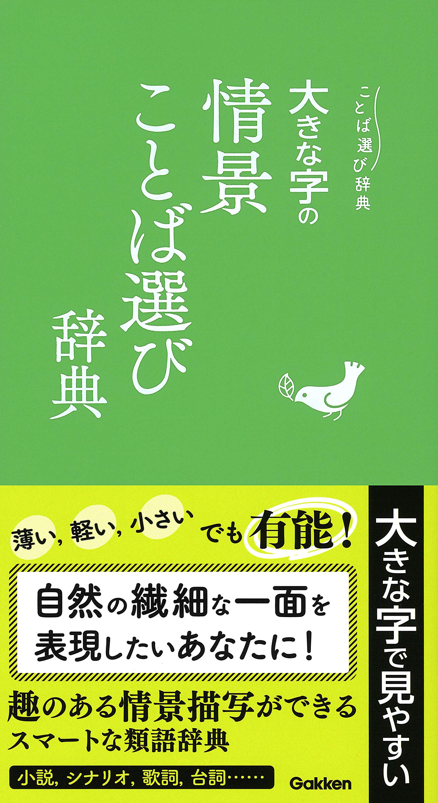 內容簡介 ★『情景ことば選び辞典』の拡大版。文字が大きく見やすくなりました。少し大きめのスマホサイズです。「ことば選び辞典」シリーズ、第4弾!もっと趣のある情景描写を目指す人のための「情景ことば選び辞典」が登場。創作者はもちろん、誰もが一度は経験する「自分の場面描写がワンパターンで殺風景…」というもどかしさを解消するための辞典です。こちらも薄い、軽い、小さいの三拍子でいつでもどこでも使えます。【本書の特長】・情景を描写するのに役立つことばを、「気象」「自然」「草木」「生き物」「人体」「色」「時・季節」の7つの章に分けて収録。・冒頭にキーワード一覧を掲載。なんとなく眺めて気になったキーワードから探せる。・収録語にはすべて語義と例文を掲載。実際の使い方がわかりやすい!・自分が思いついたことばを確認したいときに使える総索引つき。・付録として「十二ヶ月の異名」「二十四節気七十二候」「季節の動植物」収録。季節折々のことばを探したいときにも。【使用例】■case1「シナリオの中で雨が降る光景を描くのだけど、ただの雨降り……もっと雰囲気を出したい」→キーワード見出し「雨」の中から、心の琴線に触れる語を探す→「小糠雨」を発見。このしとしと降るイメージは登場人物の心情にもぴったり。採用!■case2「吹雪ということばを使ったけど、自分のイメージと微妙に違うし、文章全体でみるとなんだか違和感がある。もっといい表現ないかな」→索引で「吹雪」を検索、該当ページへ移動→キーワード見出し「雪」の中から、「吹雪」と似た意味のことばを探す→「雪風巻」発見。この舞い上がるイメージが欲しかった!■case3「創作の練習も兼ねてショートショートを書くので、なんか風流なお題がほしいなあ」→無の境地で、とりあえずこの辞典を開く→「返り花」に目が留まる。芭蕉に挑戦。