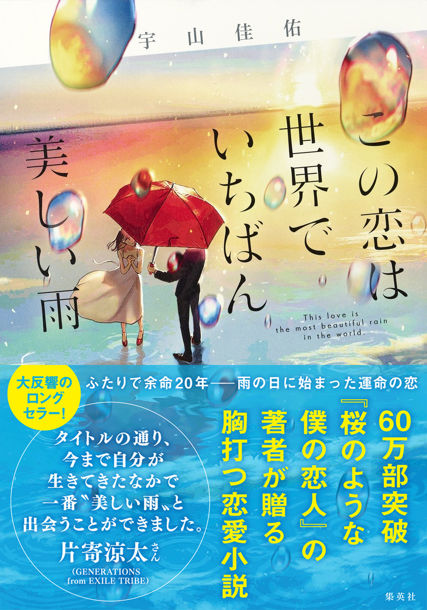 內容簡介 "GENERATIONS from EXILE TRIBE 片寄涼太さん、感動!!「タイトルの通り、今まで自分が生きてきたなかで一番""美しい雨""と出会うことができました。そんな美しい雨のなかで""生きる意味""、""幸せとはなにか""ということに向き合うことができ、最後には必ず""美しい涙""が止まらなくなると思います。生きているなかで心から大切に想える人と出会えること、ただそのことが""奇跡""なんだと気づかせてくれるとても素敵な作品でした。」* * * * * * * * * * * * * *彼女の笑顔を想うと、時々、涙がこぼれそうになる。この幸せが、この恋が、ずっとずっと続いてほしい。そう思っていたのに――。駆け出しの建築家・誠と、カフェで働く日菜。雨がきっかけで恋に落ちた二人は、鎌倉の海辺の街で愛にあふれた同棲生活を送っている。家族のいない日菜に「夢の家」を建ててあげたい、そのために建築家として名を上げたいと願う誠だったが、ある雨の日、日菜と一緒にバイク事故で瀕死の重傷を負ってしまう。目を覚ました彼らの前に、“案内人""と名乗る喪服姿の男女が現れる。そして誠と日菜は、二人合わせて二十年の余命を授かり、生き返ることに。しかしそれは、互いの命を奪い合うという、あまりにも苛酷で切ない日々のはじまりだった――。この恋の結末に、涙せずにはいられない。『桜のような僕の恋人』の著者が贈る、胸打つ長編小説。●著者プロフィール宇山佳佑(うやま・けいすけ)1983年生まれ。神奈川県出身。脚本家、作家。ドラマ『スイッチガール!!』『主に泣いてます』『信長協奏曲』などの脚本を執筆。著書に『ガールズ・ステップ』『今夜、ロマンス劇場で』『桜のような僕の恋人』『君にささやかな奇蹟を』がある。"