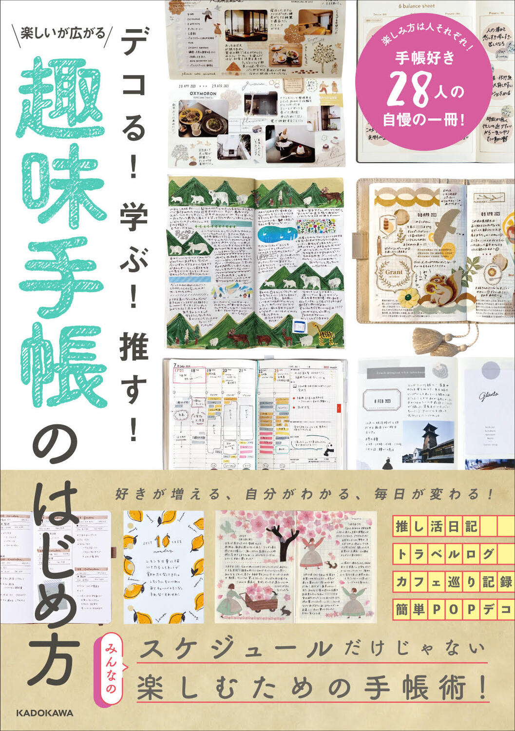 28名のみなさんの手帳実例と、ペンやシール、マスキングテープ、スタンプなど手帳作りが充実する、たのしくなる文房具の活用法も満載です。