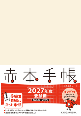 內容簡介 2025年10月始まり! 2027年3月まで使える! 受験に特化した手帳少しでも大学受験を意識したら…即、 『赤本手帳』!志望校合格者によるアドバイス、200本 以上!合格者の声から生まれた『赤本手帳』には、「合格者の知恵」が、たくさん詰まっています。合格のポイントやアドバイスなど、先輩のリアルな声が、受験をしっかりサポート!やっぱり一番参考になるのは、先輩受験生の声◎持ち運びに便利な《コンパクト》版!・手になじむB6サイズ。重い参考書と一緒に持ち歩いても負担になりません。・180度開くので書き込みしやすい・しおりひも2本つき・学校で、塾で、通学電車の中で、カフェで、自習室で…どこでも勉強計画がさっと確認できます。◎《受験に役立つコンテンツ》が満載!・入試の流れが一目でわかる「大学入試のスケジュール」を掲載入試の基本的な流れを知った上で、自分の入試での必要な準備をしよう・受験のことがわかるコラムや合格者のアドバイスが充実「赤本の効果的な使い方」「時間の上手な使い方」「スランプの抜け出し方」など・応援メッセージの書き込みページあり◎《自己管理を助けるコンテンツ》が満載!・志望校合格最大の秘訣は「何をするべきか判断し、実行すること」赤本手帳があれば、自分自身のゴール、今月・今週・今日の目標をつどつど 確認できる・志望校に入ったら、何をしたい?& 志望大学の受験には、何が必要?「なぜ自分はこの大学に行きたいのか?」を考えることが、受験のスタート入試対策の第一歩は「情報収集」。調べたら、赤本手帳にメモ!赤本に載っている情報も活用して、自分なりのゴールを見据えよう・先輩受験生の声が、モチベーションの維持に最適「記録する」習慣がつくと、その習慣が、未来の自分をサポートしてくれます。スマホにメモするだけでは流れていってしまって振り返りづらいけれど、1冊の手帳に勉強の記録を貯めていけば、「自分の成長のあかし」が可視化されて、自信につながる!とことん受験生目線に立った『赤本手帳』で、「自分だけの受験スケジュール」を立てて、がっちり合格を勝ち取りましょう! 2025年10月始まり! 2027年3月まで使える! 少しでも大学受験を意識したら…即、 『赤本手帳』!