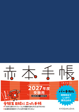 內容簡介 2025年10月始まり! 2027年3月まで使える! 受験に特化した手帳少しでも大学受験を意識したら…即、 『赤本手帳』!志望校合格者によるアドバイス、200本 以上!合格者の声から生まれた『赤本手帳』には、「合格者の知恵」が、たくさん詰まっています。合格のポイントやアドバイスなど、先輩のリアルな声が、受験をしっかりサポート!やっぱり一番参考になるのは、先輩受験生の声◎細かな予定が書き込める大きな《バーチカル》版!赤本手帳を使った先輩たちの「もっと緻密な計画を立てたい!」のリクエストを反映した バーチカル版 刊行!・見開き1週間のA5判サイズ。時間単位で予定を書き込むことができます。・1日の時間の使い方が視覚的・直感的に把握できます。・しおりひも2本つき・綿密なスケジュール管理で、合格に向けた道筋をしっかり立てることができます。◎《受験に役立つコンテンツ》が満載!・入試の流れが一目でわかる「大学入試のスケジュール」を掲載入試の基本的な流れを知った上で、自分の入試での必要な準備をしよう・受験のことがわかるコラムや合格者のアドバイスが充実「赤本の効果的な使い方」「時間の上手な使い方」「スランプの抜け出し方」など・応援メッセージの書き込みページあり◎《自己管理を助けるコンテンツ》が満載!・志望校合格最大の秘訣は「何をするべきか判断し、実行すること」赤本手帳があれば、自分自身のゴール、今月・今週・今日の目標をつどつど 確認できる・志望校に入ったら、何をしたい?& 志望大学の受験には、何が必要?「なぜ自分はこの大学に行きたいのか?」を考えることが、受験のスタート入試対策の第一歩は「情報収集」。調べたら、赤本手帳にメモ!赤本に載っている情報も活用して、自分なりのゴールを見据えよう・先輩受験生の声が、モチベーションの維持に最適「記録する」習慣がつくと、その習慣が、未来の自分をサポートしてくれます。スマホにメモするだけでは流れていってしまって振り返りづらいけれど、1冊の手帳に勉強の記録を貯めていけば、「自分の成長のあかし」が可視化されて、自信につながる!とことん受験生目線に立った『赤本手帳』で、「自分だけの受験スケジュール」を立てて、がっちり合格を勝ち取りましょう! 少しでも大学受験を意識したら…即、 『赤本手帳』! 多くの要望に応えて バーチカル版 刊行!
