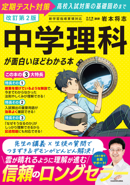內容簡介 基礎から発展まで充実の解説で、「わかる」爽快感を君に。信頼のロングセラーシリーズが、教科書改訂に合わせてリニューアル!◆◇◆基本用語を「丸暗記する」のではなく、「理解して覚える」学習が可能に!・河合塾Wings講師・岩本先生のわかりやすくて丁寧な解説が1冊にギュッと凝縮!・授業実況を読んで「なるほど!」と納得しながら問題に取り組める。理科がどんどん得意&得点源に!・理科の全範囲が1冊で学習可能。普段の定期テスト対策はもちろん、高校入試対策に必要な基礎固めに!【本書の特長】★特長1:図や表、グラフがたくさん! 多くの図版と関連付けてた理解と学習が可能で、記憶も定着しやすくなります。計算不要でグラフを読み取るだけで解答できるような出題にも対応しやすくなります。★特長2:授業にあいづちを打って、君の疑問を代弁する「生徒役」キャラクターが登場!まるで実際の授業を聞いているかのような臨場感。先生の説明に加え、生徒役のキャラが読者のリアルな疑問・質問・つまずきポイントを代弁してくれます。★特長3:複雑な実験&観察問題が解けるようになる!本書では、1、目的2、手順や使用する器具の使い方3、注意点4、結果からわかることの4つのポイントをおさえた効果的な学習が可能です。「実験」や「観察」に興味を持つことが、理科を好きになるきっかけに。ここでも実験装置や観察器具などの図、実験結果の表やグラフなどと関連付けて学習しましょう。本書のテーマは、続けて一通り読むことで、各分野の全体像が見えてきます。知識と知識がつながり、「そうだったのか!」「なるほど!」と実感できれば、理科の学習がさらに楽しくなるでしょう。 定期テスト対策から高校入試対策の基礎固めまで、この1冊で全面サポート!