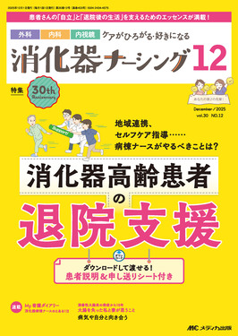 | 簡介 / | 消化器ナーシング Vol.30 No.12(12 2025):,地域連携、セルフケア指導……病棟ナースがやるべきことは?消化器高齢患者の退院支援ダウンロードして渡せる!患者説明&申し送 |