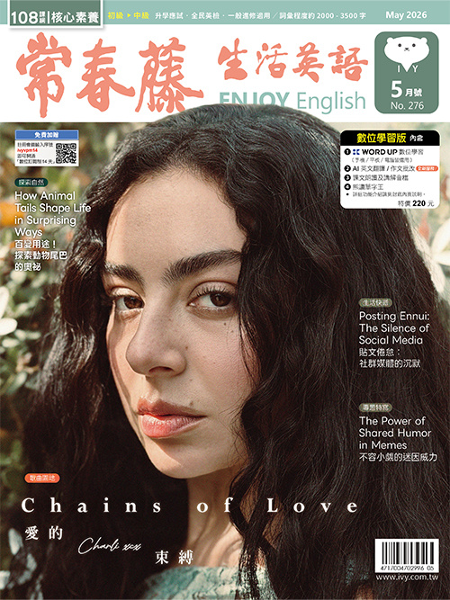 | 簡介 / | 常春藤生活英語 (書+數位學習版 5月):常春藤生活英語(數位學習版)276期2026 05:誠品以「人文、藝術、創意、生活」為核心價值,由推廣閱讀出發,並透過線上網路,傳遞博雅 |