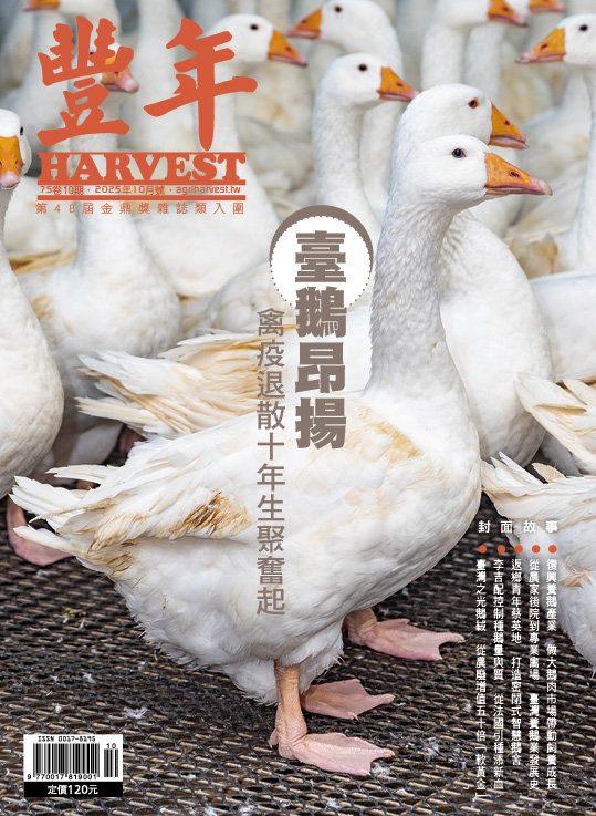 內容簡介 臺鵝昂揚 禽疫退散十年生聚奮起臺灣是全世界僅次於中國的第二大鵝肉生產國家,養鵝產業卻在2015年禽流感疫情中重傷,幾近覆滅。鵝農10年復興,近年才恢復到當初八成規模,去年屠宰量已近400萬隻。十年生聚,臺灣鵝產業奮起!代表的是禽畜產業不屈不撓的精神,及科學化的養殖觀念和更多元的食用及加工應用。走過瘟疫,青農蔡英地打造密閉式智慧禽舍,改善飼養環境舒適性、提升鵝隻健康,阻絕野鳥、疫病,讓鵝隻歡唱向天歌。臺灣養鵝以超過97%的白羅曼鵝為最大宗,國內種鵝在長期近親繁殖下已出現近交衰退現象,睽違10年,今年首度有包括青農李吉配在內的種鵝場自國外引種,期望以新血種原改善種鵝規格、提升產蛋率。臺灣是禽流感疫區,國內鵝肉生產主供內銷市場,但國人鵝肉消費長期仰賴「鵝肉攤」,鵝肉若不開發新產品,消費客群無法擴展,很容易成為產業發展新的桎梏。餐桌端的多元飲食開發,鵝肉的多樣化烹飪方式,及文青風格的店頭,吸引更多消費族群,可以成為產業再一步前進的新動力。這次封面故事,中華民國養鵝協會秘書長林佳慧回首養鵝產業10年產銷峰迴路轉,如何在不景氣中拓商機,揭示後疫情時代新挑戰。鵝肉專賣店「偶鵝嚐嚐」將傳統鵝肉攤轉型,以平價、多樣化鵝肉餐點吸引新客群;「鵝庄」游出鹽水鵝料理紅海市場,研發燒鵝料理,開拓新藍海。鵝堪稱是最高貴的家禽,鵝肉單價高,各部位內臟可食用,全鵝料理不浪費;白羅曼鵝因為有一身潔白的鵝絨,鵝絨保暖係數高於其他家禽,讓養鵝真正做到全鵝利用。國內羽絨大廠「合隆毛廠」,將原本是農廢的鵝絨,加工成輕暖的羽絨被,臺灣鵝絨成為「軟黃金」的隱形冠軍。本期聚焦鵝產業復興,讓臺灣鵝能再次昂揚挺立。農產新豐味 Agri Nova落花生>落花生台農11號高油酸品種高產且油脂穩定性佳 適合機械採收 6農好日 Agri Japan田間的搖滾樂手>田園裡的電吉他 中村拓真與爽風農園的日常農業與音樂都是生活的一種 14封面故事 Cover Story臺鵝昂揚>禽疫退散十年生聚奮起 24養鵝產業10年復興 做大鵝肉市場帶動飼養成長肉鵝供過於求拓銷路 種鵝近交衰退引新種 26從農家後院到專業禽場 臺灣養鵝業發展史走過大疫衝擊 韜光養晦10 年待展翅高飛 32中國鵝、歐洲鵝 臺灣能吃到哪些鵝?平平都是鵝 外觀、性狀、分類卻不同 35返鄉青年蔡英地 打造密閉式智慧鵝舍用太陽能養鵝的男人 向天歌開創養殖新可能 38養鵝產業鏈重要樞紐 種鵝場控制供應量與質李吉配引進法國種鵝 為臺灣種原庫添新血 46偶鵝嚐嚐吸年輕客 平價餐點創近10萬元日營收用新鮮食材留住老饕客 創新餐點攬新客群 54外酥內嫩的黃金燒鵝 鵝庄美味出爐黃修量全臺首創低溫溼式熟成 58「臺灣鵝絨」軟黃金的溫暖旅程從農廢到50倍價值的隱形臺灣之光 64農田水利特輯 Agri Irrigation農田水利網絡與精準灌溉>農田水利工程減碳實例——以朴子溪渡槽為例 76優化農田水利設施巡檢及圳路清淤作業 80活化收益農田水利非事業用不動產,永續發展農田水利事業 84島嶼草木誌 Island Ethnobotany花環植物>人與自然共同編織的民族文化魯凱族的花環植物 凝聚社群、傳承文化 90農業經營 Agri Business月眉火蔥>火蔥文化的傳承與創新保留珍貴種原 守護對部落的承諾 96植人植語 Gardening Tips桂花>門前桂影,月下飄香 桂花的芬芳記事臺灣最常見四季桂 不需頻繁修剪便能開花 102風峰相連 History Harvest豐土生活>中秋賞月 108【雜誌簡介】《豐年》雜誌於1951年發行,每月15日出刊,至今已連續發行70餘卷,詳實記錄著臺灣農業發展的經過。除了扮演政府與農民間的橋梁,宣導政令、提倡新知技術,也深刻反應農村生產現況、關注生活與生態議題,與臺灣農業一起進步成長。