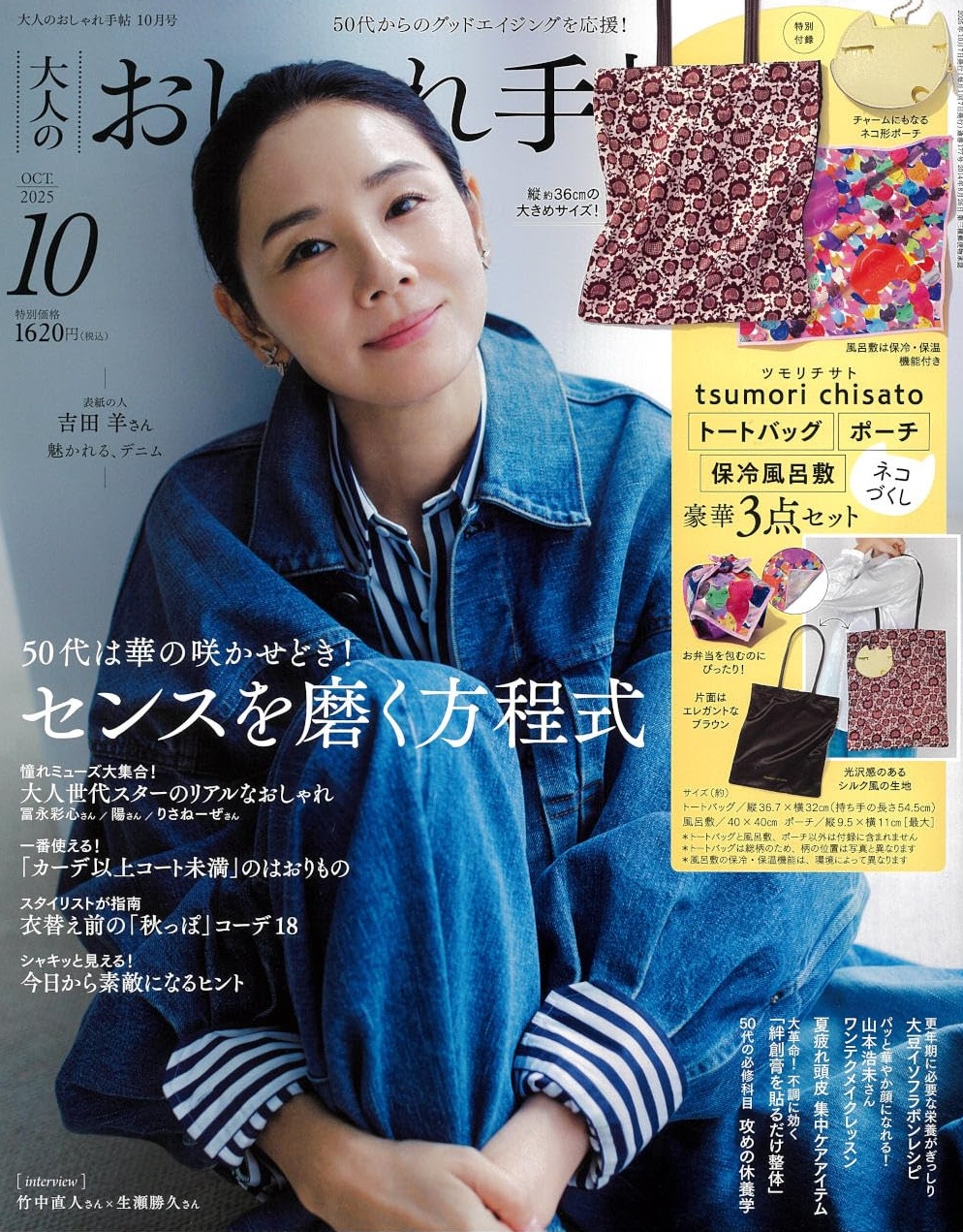 內容簡介 TSUMORICHISATO津森千里托特包&包巾&造型收納包所謂的「很有時尚品味」究竟是什麼意思?穿戴名牌精品並非必要條件,重點是了解自己適合什麼樣的設計,懂得如何在穿著裡融入潮流氣氛、季節印象。品味不是特殊天賦,可以透過磨練進化升級,實際上應該怎麼做?就讓「成熟女性自然生活風格服飾造型讀本 10月號 2025」來助大家一臂之力。不妨從見賢思齊開始,替各位調查大人世代的時尚生活實況,從她們的選擇、思維中發現50代也美麗動人的方法。接著公開融入秋意的夏末穿搭原則,分享薄外套的造型變化實例,也列出立刻就能顯得更有型的流行祕訣,還有專家傳授的華麗妝感建議,都很有參考價值喔。附加商品:TSUMORICHISATO托特包&包巾&造型收納包附加商品說明:附TSUMORICHISATO托特包&包巾&造型收納包。提供一款托特包,一面是暗紅色系印花布,另一面是高雅的光澤感咖啡色。一條附保冷功能的貓臉圖案風呂敷包巾,以及一個可吊掛的貓臉造型拉鍊收納包。(托特包尺寸:高36.7、寬32、提把長54.5公分,材質:聚酯纖維、PVC,耐重量約8公斤。風呂敷包巾尺寸:40x40公分,材質:聚酯纖維。造型收納包尺寸:高9.5、寬11公分。材質:PVC、合金。)內容介紹P.21 大人世代流行生活實況訪問大人世代的時尚達人,調查她們的時尚生活實況,公開日常穿搭重點、愛用單品之外,也送上實際的造型實例。無論幾歲都想維持美麗印象的各位,快來了解一下。P.29 晚夏早秋穿搭原則在氣溫尚未降下來的晚夏早秋,該如何穿出秋季流行氣氛?不妨多搭配一件美麗的背心長外套、把日常包包換成皮革材質、穿涼鞋時多穿雙襪子,或配戴秋季元素的配件,都能帶來季節新鮮感。P.32 實穿有型輕薄外衣雖然天氣還很熱,但已經是想帶件薄外套出門的季節。推薦針織外套、背心長外套、長版襯衫…等輕薄又好搭的外衣,並分析9月、10月、11月的穿搭變化,現在就買絕對不虧。P.39 魅力升級生活建議除了服裝打扮,姿勢、動作也是塑造個人印象的重要關鍵。提供美麗站姿和坐姿示範,以及衣服挑選的相關建議,配戴耳飾、戴戒指或做美甲也可以提升魅力,歡迎大家一起來研究。P.47 OK繃整體祕訣肩頸僵硬、腰痛、手麻…等等,一過50歲,覺得身體狀況特別多的各位,務必試試物理治療師山內義弘的OK繃整體術。只要用正確手法,貼在正確的位置,就可以改善不舒服的狀況。P.50 大豆異黃酮健康食譜大豆異黃酮類似人體雌激素,有舒緩更年期症狀的效果。在此就以富含大豆異黃酮的黃豆、豆腐等加工食品為主要食材,設計美味又健康的日常料理食譜,參考指數百分百。P.58 夏末頭皮保健選擇一整季都在面對汗水、油脂、紫外線…等傷害,每到夏天的尾聲,應該要多關心一下頭皮的狀況。介紹可以消除疲勞與髒汙,舒緩放鬆的頭皮保養產品,健康的頭皮也比較不會有掉髮、白髮等煩惱喔。P.60 簡單技巧華麗妝感明明很認真化妝,看起來卻總有點平淡無奇嗎?專業彩妝師山本浩未分享適合50代大人的彩妝技巧,只要抓住幾個簡單大原則,不用濃妝豔抹也能表現出華麗印象。