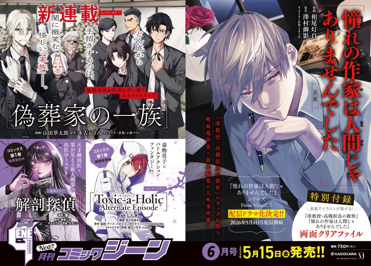 內容簡介 月刊COMIC GENE 6月號 2026─附副教授高槻彰良的推測&吸血鬼作家的異搜事件簿雙面文件夾
