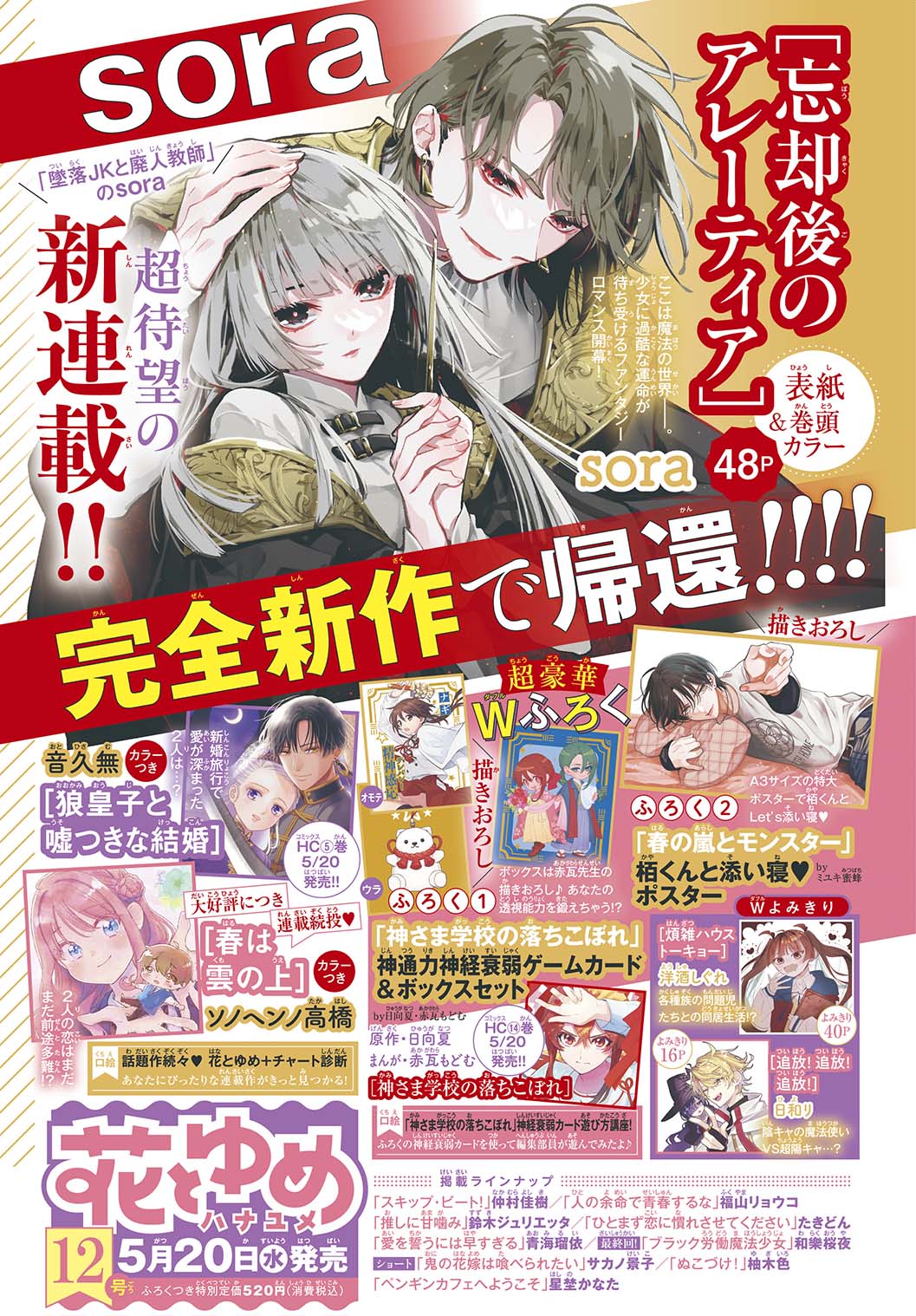 花とゆめ (6 5 2026 附降臨在學校的神明大人神經衰弱紙牌遊戲&春之風暴與怪獸海報)