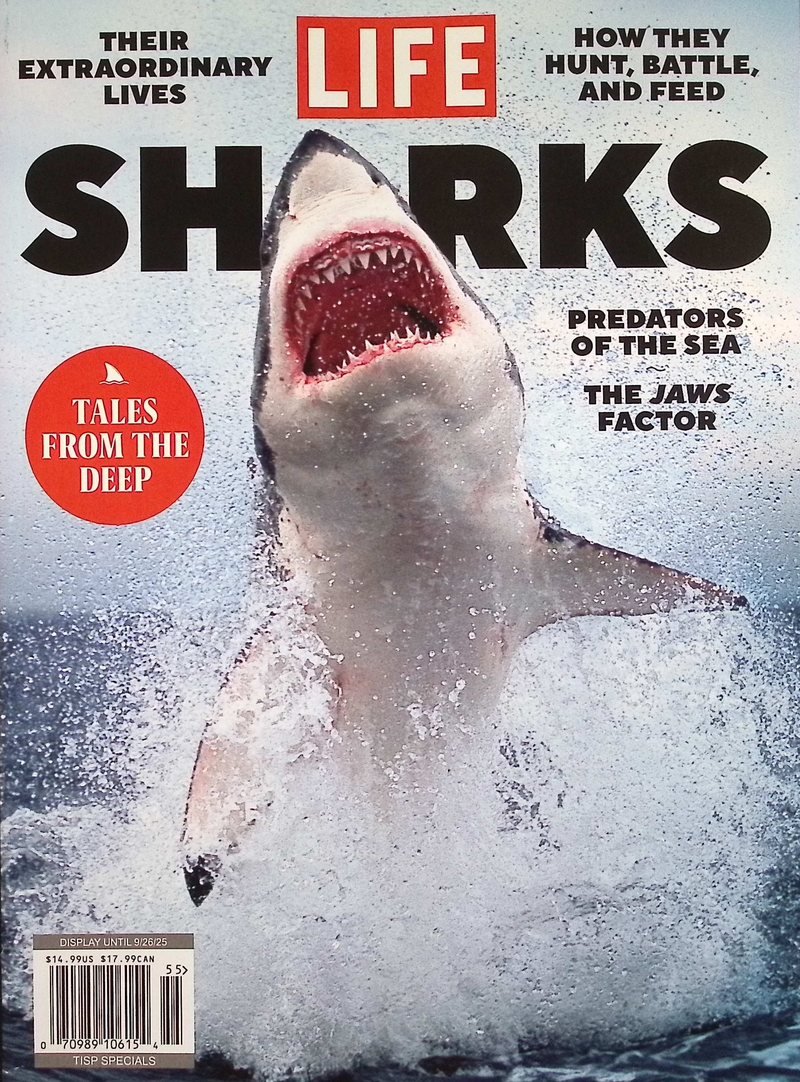 商品描述 | LIFE: SHARKS (No.55 2025):《LIFE》特刊〈Sharks:PredatorsoftheSea〉全面探索鯊魚的世界,揭示其演化奧秘、物種多樣性與頂級掠食者角色。內容涵蓋經典電影與動畫中的鯊 |