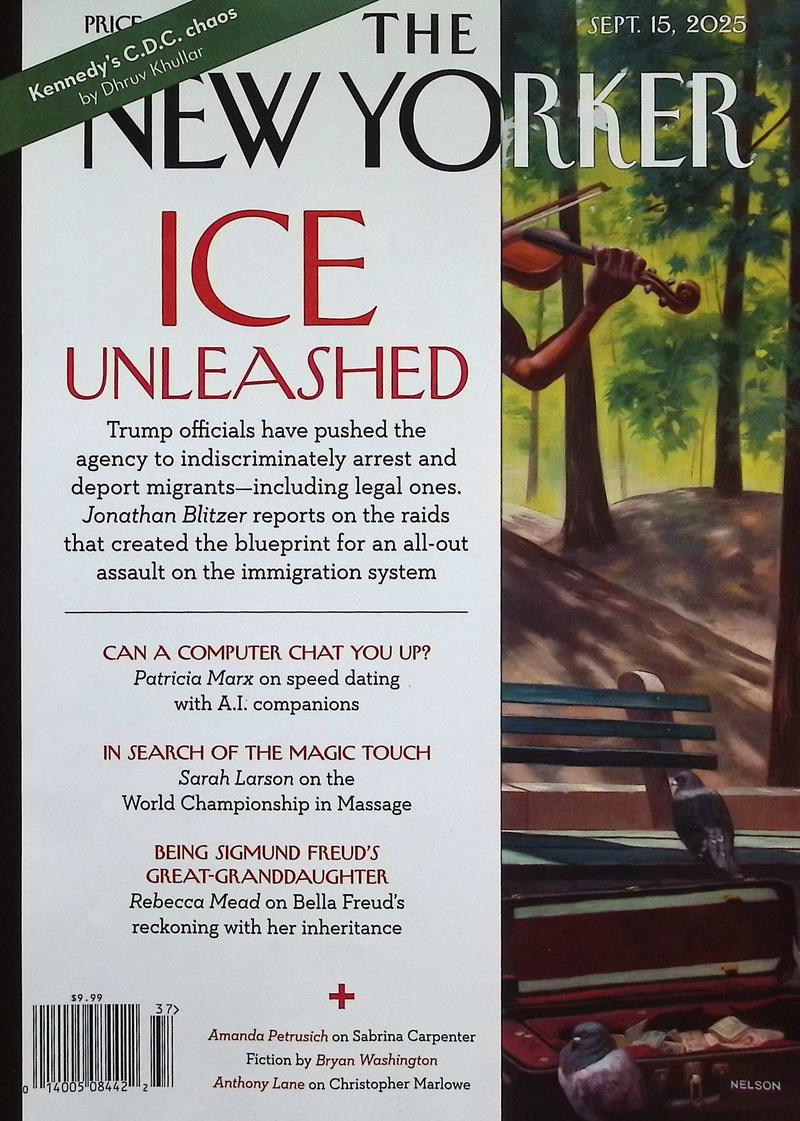 | 簡介 / | THE NEW YORKER (9 15 No.37 2025):《TheNewYorker》2025年9月15日號以KadirNelson封面畫作〈TheSoloist〉開場,內容橫跨文化、政治與藝術。〈TheTalkoftheTown〉探討美國 |