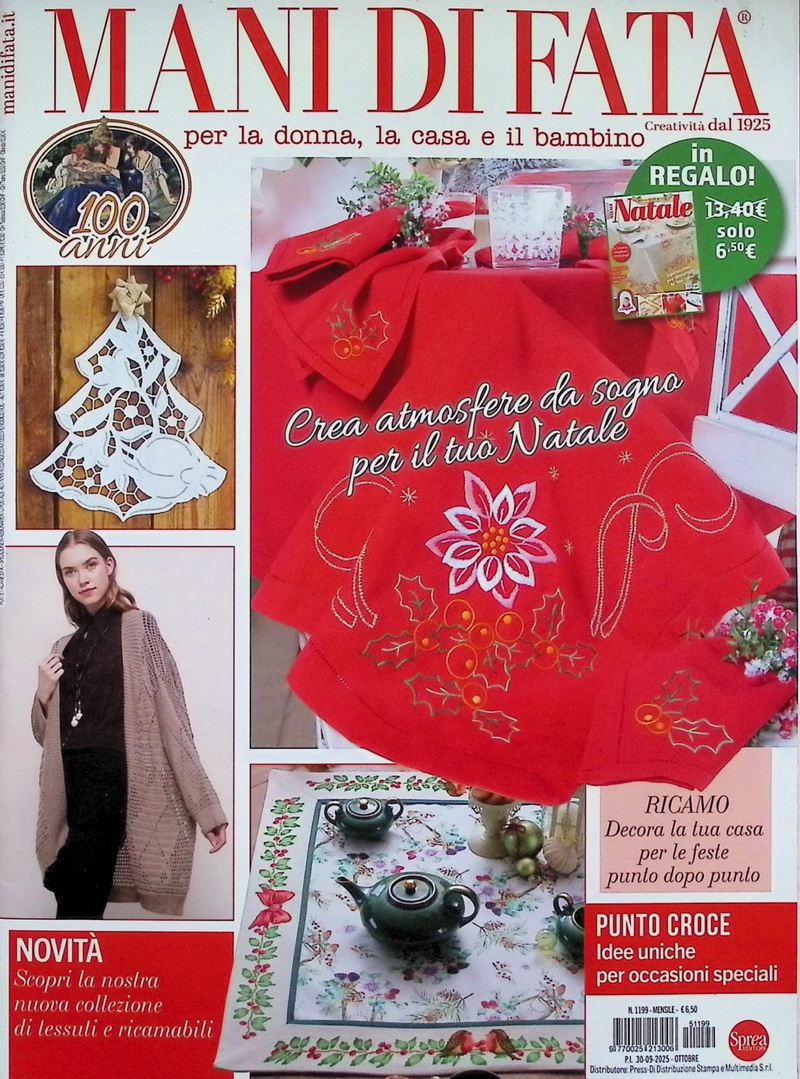 | 簡介 / | MANI DI FATA (Oct No.1199 2025):《ManidiFata》專為刺繡、拼布、十字繡和鉤針愛好者提供創新與傳統兼具的手工藝靈感。自1925年以來,持續透過詳細的教程和豐富的圖案, |