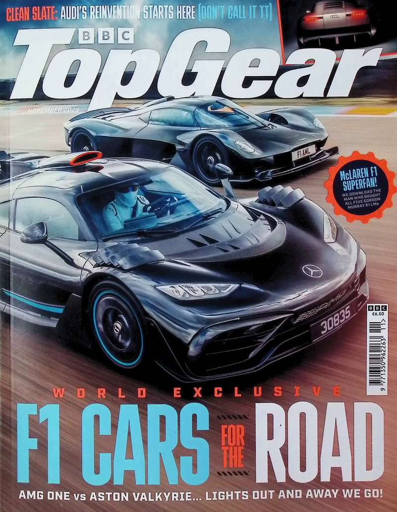 | 簡介 / | Top Gear (UK Nov No.401 2025):《TopGearUK》2025年11月號以「F1CarsfortheRoad」為主題,聚焦AMGOne與AstonValkyrie兩款將賽道技術帶上公路的超跑對決。內容深入剖析McL |