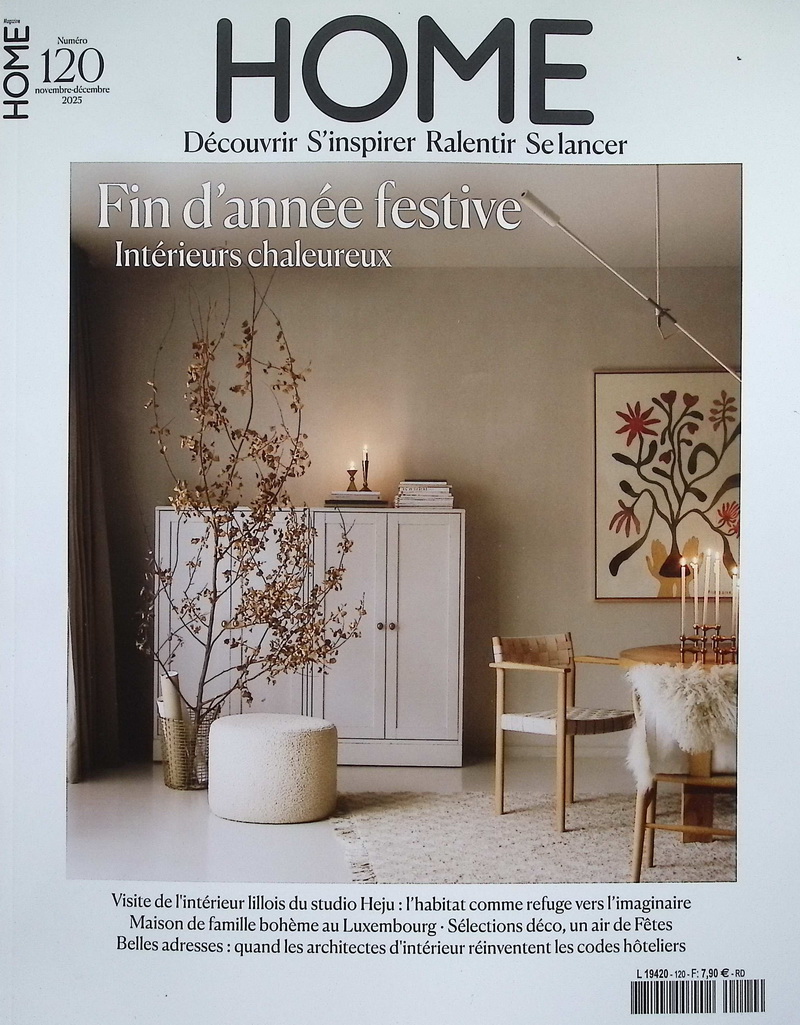 | 簡介 / | HOME (Nov Dec No.120 2025):《HOME》2025年11–12月號以「Find’annéefestive:Intérieurschaleureux」(節慶歲末:溫暖居所)為主題,呈現法式冬季家居的柔和詩意。封面 |