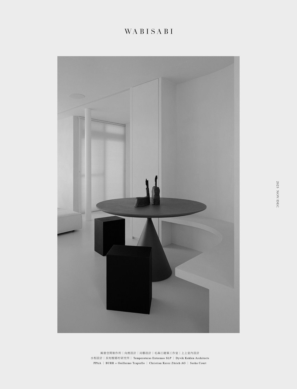 產品目錄 當代 Comtemporary025 生態水塔|基希貝格鳥與水共生塔Water Tower|Kirchberg Tower of Birds and Water Temperaturas Extremas SLP品牌關注 Record034 未完的故事,在演進軸線書寫製錶傳奇 百達翡麗An Unfinished Story: Writing Time Through the Evolution of Watchmaking — Patek Philippe主題 Features042 化繁為簡的邏輯,蘊生安歇棲身之所 總監 翁梓富The Logic of Simplicity, Where Stillness Finds Its Home052 住宅|夢幻莊園 兩册空間製作所Residence|Neverland Ranch 2BOOKS Design 品牌關注 Record070 大簡若奢:錘鍊水文化的靈魂之美— DornbrachtRefined Simplicity: Shaping the Soul of Water Culture — Dornbracht空間 Interior 080 住宅│沉寂 向度設計Residence|Silence Degree Design088 住宅|靜界延聲 尚藝設計Residence|Echoes of Tranquility Shang Yih Interior Design098 住宅|台南鄭公館 毛森江建築工作室Residence|Cheng Family Residence in Tainan Mao, Shen-Chiang Architecture Studio108 住宅|Two-Way 上上室內設計Residence|Two-Way CA Interior Design116 住宅│在河之洲 水相設計Residence|River Isle Waterfrom Design128 辦公室|P&L 辦公室 長短樹鄉村研究所Office|Apricity Development Brand Headquarters studio tngtetshiu品牌關注 Record138 光的邊界,理性與詩意之間的流動The Boundaries of Light:Where Rationality Flows into Poetry— Penta Light全球 Worldwide146 溫室|玻璃.石屋Greenhouse|Glass House Stone House Dyvik Kahlen Architects154 住宅|Ocote 之家Residence|Casa Ocote PPAA164 創意空間|PATIOCreative Space|PATIO BURR + Guillermo Trapiello172 公共基礎設施|珍珠之路停車場Public Infrastructure|Pearling Path Car Parks Christian Kerez Zürich AG創作者 Creators186 本能召喚,真實捏出野性與無常 藝術家 Sasha CourtInstinctive Calling: Shaping Wildness and Impermanence Artist Sasha Court城市探索 City Explore194 在愛琴海重拾生活的本質— 1OAM apothekeRediscovering the Essence of Living in the Aegean — 1OAM apotheke專欄 Column202 漫步京阪老屋咖啡館 李清志Strolling through Kyoto–Osaka’s Heritage Cafés Ching-Chih Lee