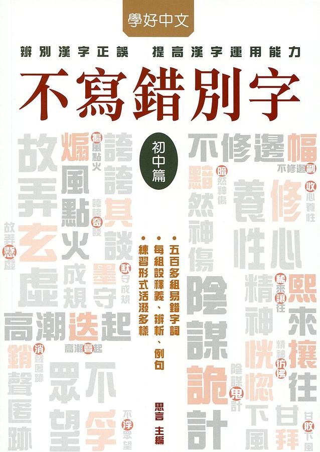 簡介 / | 不寫錯別字: 初中篇:辨別漢字正誤,提高漢字運用能力超過500組易錯字詞每組設釋義、辨析、例句練習形式活潑多樣錯別字是錯字和別字的總稱,可以說是學生學習中的常見病、 |