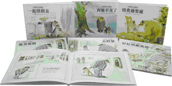 內容簡介 適讀年齡:8~12歲 ◎本書榮獲義大利波隆那國際兒童書展大獎 本套書包含: 《一起照相去!》 莎琳發現奧尼有好多就相片,在相片中看到各種模樣的奧尼,還奧尼和朋友活動的樣子,讓莎琳覺得好有趣,但當莎琳拆開另一個信封,發現裡面都是奧尼和許多小朋友的合照時,她的心情開始低落了起來……帶著孩子創造出獨一無二的美好回憶,就從這一刻開始。 《好好照顧奧尼》 奧尼生病了,莎琳趕緊去找醫生。奧尼因病臥床,向來依靠奧尼的莎琳,這次要充當小護士,學習照顧生病的奧尼了!這個故事將角色慣有的立場對調,讓孩子看看,向來依賴奧尼的莎琳,會怎麼學習照顧他人呢? 《西敏不見了》 莎琳帶著心愛的企鵝玩偶西敏和奧尼到雪地散步,不小心將西敏弄丟了,莎琳非常傷心。當奧尼獨自回雪地找回西敏時,卻發現西敏的樣子已經改變了……每個人都有自己最心愛的物品,當失去它時,該怎麼辦?看奧尼如何運用愛與耐心安慰弄丟心愛玩偶的莎琳。 《逛美術館》 奧尼帶著莎琳到美術館應徵工作,回家前順道參觀美術館,熱愛藝術的奧尼看得入迷,一不小心莎琳就不見了…… 向來形影不離的他們該怎麼辦呢? 《去野餐》 奧尼和莎琳為了野餐興高采烈地做了好多準備,沒想到野餐日卻下起了大雨!該怎麼辦呢?是不是一定得取消野餐了?有沒有方法可以改變令人失望的結局呢?當期待已久的計畫因突發事件無法進行時,孩子的感覺是驚訝、難過還是失望?該怎樣調適這樣的心情呢?看看奧尼與莎琳的方法! 《陪我過聖誕》 奧尼想邀請許多朋友,為莎琳在家裡準備盛大的聖誕派對,但是莎琳卻念念不忘雪地裡的小杉樹,只想和奧尼兩人回到小杉樹旁過聖誕……該怎麼安排才能度過一個美好的聖誕節呢? ■作者簡介 嘉貝麗‧文生(Gabrielle Vincent) 比利時著名女畫家,布魯塞爾美術學校畢業,五十多歲才開始從事圖畫書創作。她擅長以淡色水彩、鉛筆,創造出水墨畫的意境,作品充滿了人性中最純真、自然的愛,令人由衷地感動。《流浪狗之歌》是她的第一部作品,出版後轟動國際,獲得極高評價,在國際間屢獲大獎,成為國際級繪本大師。《奧尼熊與莎琳鼠》系列堪稱圖畫書的經典之作,也是許多藝術愛好者必定收藏的圖畫書。