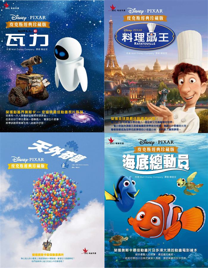 內容簡介 創造無限歡樂與精采故事的迪士尼滿九十歲了!鳴嵐特別推出九十周年珍藏版──動畫最精采套書,集結迪士尼-皮克斯動畫工作室之經典動畫,透過文字引導,帶領讀者優遊電影故事之中,學習友誼真諦與勇於面對挑戰等課題,培養正面個性. 本套書特為迪士尼九十周年圍以書腰,並收縮包套,更加贈迪士尼-皮克斯經典角色珍藏版貼紙乙張,收藏感再升級! 迪士尼-皮克斯動畫工作室自1986年成立以來即結合藝術與電腦科技,不斷挑戰動畫技術的突破,它始終堅持「用對的方式說故事」,為了保證故事的精采性,往往花上兩三年長時間的構思和討論修改。秉持著這樣的精神,1995年與迪士尼合作推出第一部完全以3D電腦動畫拍攝而成的「玩具總動員」,為動畫片開創出全新風貌。2006年併入迪士尼集團後,除了讓迪士尼穩坐動畫市場龍頭地位之外,也依然擁有本身的品牌,繼續推出掛名在「Disney-Pixar」之下的作品。 皮克斯工作室打造出膾炙人口的神奇立體動畫世界,屢屢獲得奧斯卡、金球獎、葛萊美等無數獎項的肯定。鳴嵐特別挑選迪士尼-皮克斯的得獎作品推出《皮克斯九十周年珍藏版》繪本套書,培育孩子品德與智慧,並勇敢追求、實踐夢想,精采內容絕對不能錯過。 本套書四本一套,內含《天外奇蹟》、《料理鼠王》、《海底總動員》、《瓦力》,各本簡介如下: 《海底總動員》在美麗的海底花園中,住著一對相依為命的小丑魚父子,自從魚媽媽意外喪生後,魚爸爸馬林就承擔起父兼母職的工作,盡力撫養小兒子尼莫。由於大海中暗藏種種危機,馬林非常保護尼莫,時時提醒他要小心安全,但不知天高地厚的尼莫,一心想擺脫種種限制,去追尋刺激的冒險。有一天,被好奇心驅使的尼莫再度離開父親的視線,結果被潛水夫捉去了!最後被帶到雪梨一家牙醫診所的水族箱中飼養。心急如焚的馬林因此展開千里尋子之旅,在途中他遇到形形色色的朋友,也遭遇各式各樣的危機,在健忘的魚大姊多莉、熱心的海龜群、鯨魚、鵜鵠鳥等幫忙下,他到底能不能克服萬難找到兒子呢? 獲獎紀錄:動畫界奧斯卡-安妮獎最佳動畫長片 《瓦力》西元2700年,地球垃圾堆積如山,汙染嚴重,人類紛紛移居到外太空居住,只留下打掃機器人瓦力,希望有一天等地球環境變好之後,能夠再回來地球定居。七百年來,瓦力住在廢棄的鐵皮貨櫃中,每天除了處理永遠清理不完的垃圾之外,最大的樂趣就是在垃圾堆中找尋奇特的東西,也因此他對製造他的人類愈來愈好奇。機器人堅守著崗位,執行他唯一任務──清理地球環境,直到某一天地球上出現了另一個新型的探測型機器人伊芙,她的出現讓瓦力枯燥單調的生活開始起了變化,也在陰錯陽差的情形下開始了「拯救地球」的使命…… 獲獎紀錄:金球獎最佳動畫長片、全球網友票選前百大電影長片(IMDB Top250之第60名) 《天外奇蹟》七十年來無法實現的夢想,今天終於要出發! 卡爾從小就想成為一個探險家,結婚後,更與妻子計畫一趟趟精彩的旅行,可惜一直未能成行……就在艾莉過世後的某一天,以正牌童子軍為目標的小羅敲了卡爾的屋子大門,希望關懷這位獨居老人。 沒想到,卡爾正準備將屋子改造成氣球屋,升起飛到遠方,兩人自此踏上一段前所未有的冒險! 獲獎紀錄:奧斯卡最佳動畫長片、金球獎最佳動畫長片 《料理鼠王》小米是一隻小老鼠,他最大的夢想就是能成為料理界的頂尖名廚!原本一家人住在法國鄉村,後來移居到巴黎的下水道,新家的上方是一家頂級餐廳,在主廚食神過世以後,餐廳也面臨嚴峻的考驗。小米意外認識了菜鳥廚師小林,並且終於有機會發揮他的廚藝天份,成了小林的影子廚師。笨拙的小林加上膽大包天的小米,這一人一鼠的絕佳組合,在巴黎美食界掀起了一股美食新風潮。然而,正當一切看起來都很順利的時候,他們的祕密竟然被發現了……小林和小米能否安然度過這場危機?他要放棄夢想,還是應該繼續追逐他的廚師夢? 獲獎紀錄:金球獎最佳動畫長片、動畫界奧斯卡-安妮獎最佳動畫長片