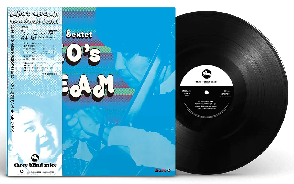 內容簡介 • three blind mice [プレミアム復刻コレクション] シリーズ第2期第2回発売鈴木勲のTBM第7弾。ソウルフルかつ叙情的なタイトル曲と"フィール・ライク・メイキン・ラヴ"に感動してやまない、愛娘に捧げた壮大なコンセプト・アルバム。(シリーズ監修:塙耕記)★★★★★ ☆☆☆☆☆ ★★★★★• From Isao Suzuki, whose name has appeared in liner notes in records by Thelonius Monk, Charles Mingus, and Ella Fitzgerald• Seventh Three Blind Mice release by Isao SuzukiThis is the 7th TBM album by Isao Suzuki. The soulful and lyrical title track and the song "Feel Like Making Love" are the highlights. This is a magnificent concept album dedicated to his beloved daughter.Takao Uematsu(ts), Takashi Imai(tb), Sadayasu Fujii(p), Yoshio Suzuki(b), George Otsuka(ds)Rec.: 1970.11.19 Orig. Rel.: 1971【収録内容】[SIDE A]1. Ako's Dream (あこの夢)2. Isao Family[SIDE B]1. Feel Like Makin' Love2. Seven Come Eleven