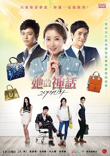 內容簡介 只要敢於夢想,你就一定能做到! 一個成功打造名牌包並實現夢想的故事 姜婷秀母親過世後投靠了從未謀面的舅舅,受到了舅媽與表姊慶熙的冷眼對待;苦無子女的藝術家禹桃英領養了婷秀,卻發生車禍成了植物人,當禹桃英奇蹟醒來卻早已失憶,禹桃英的家人想把婷秀送去美國幫助桃英恢復記憶;但舅媽野心大發,謊稱自己的女兒慶熙就是婷秀,把慶熙送出國從此過著好日子!一直夢想成為包包設計師的婷秀參加了神話集團的設計師甄選,沒想到在神話集團看見了慶熙,但慶熙卻當她是陌生人,並想盡辦法將她趕走,神話集團小開振厚被婷秀的樂觀開朗所吸引,但慶熙一心想當上神話集團夫人,兩人的愛情保衛戰就此展開!。劇名:她的神話 Love In Her Bag 그녀의 신화編劇:金晶亞導演:金勝烈主演:崔貞媛、金楨勳電視:JTBC集數:全20集(每集約60分鐘)官網:http: drama.jtbc.co.kr bagstory 演員:殷婷秀/崔貞媛 飾 惠貞的女兒、擁有設計包包的超級天份陶振厚/金楨勳 飾 神話集團策略企劃本部長也是繼承人金瑞賢、殷慶熙/孫恩書 飾 婷秀的表姐妹,自尊心強,樣樣第1名姜民基/朴胤戴 飾 神話集團設計室長,京希的初戀殷惠貞/崔秀林 飾 婷秀的媽媽殷基正/孟床訓 飾 婷秀的舅舅、慶熙的生父金美妍/全秀卿 飾 婷秀的舅媽、慶熙的生母殷慶浩/張泰成 飾 基正與美妍的兒子呂淑慶/卞貞慧 飾 婷秀的好姐妹陶景哲/金成謙 飾 神話集團創立者及會長金鐘旭/金秉世 飾 京希的養父禹桃英/金惠仙 飾 京希的養母崔秀浩/全盧民 飾 婷秀的生父