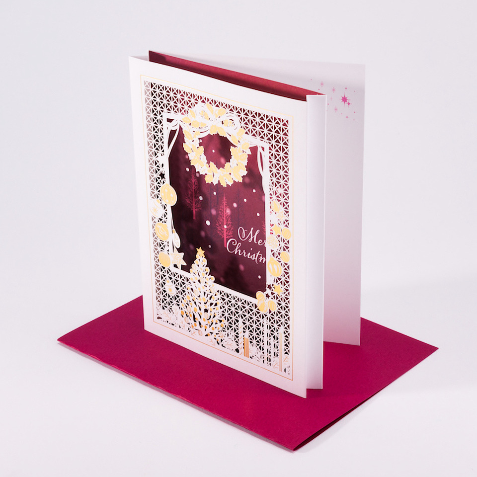 日本 EASE 聖誕卡片 雷雕 紅色 GX-4202