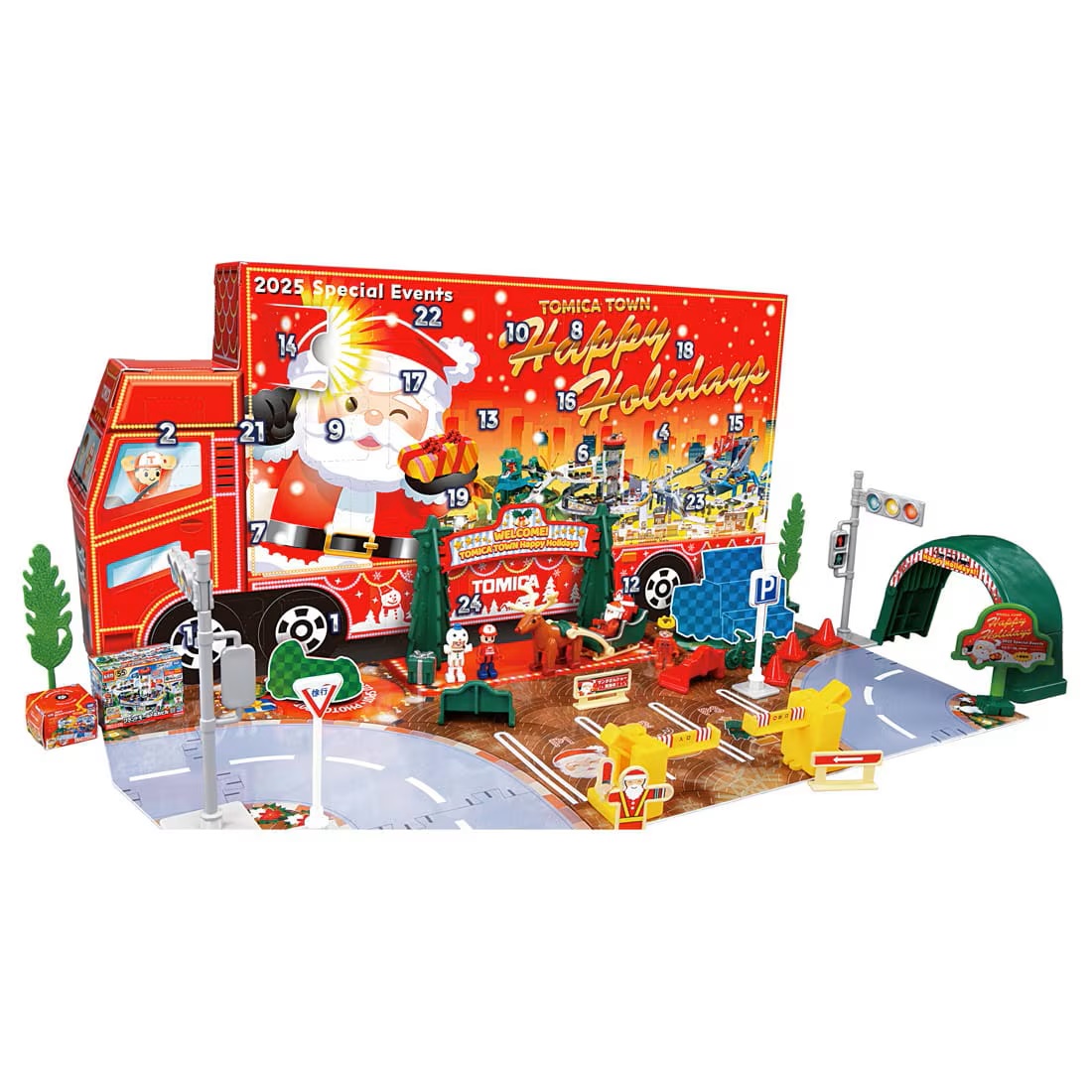 內容簡介 每天打開一個24天的日曆,開啟你的冒險之旅! 2025年Tomica降臨曆登場!!包裝盒採用卡車造型,以廣告卡車為主題,內含兩輛特別的Tomica聖誕主題小車!禮盒包含一個24天的日曆,內含各種禮物,營造濃濃的聖誕氛圍。快來打開看看裡面有什麼驚喜吧!打開盒子正面,即可看到一張以廣告卡車活動為主題的遊戲地圖。每天打開一張,拼湊完整張地圖,打造一個趣味十足的Tomica小鎮。場景和配件可與另售的Tomica小鎮套裝搭配使用。內含兩輛特別的Tomica聖誕主題小車。(本產品為2025年限量版。)*除特別版Tomica小車外,其他Tomica小車需另行購買。