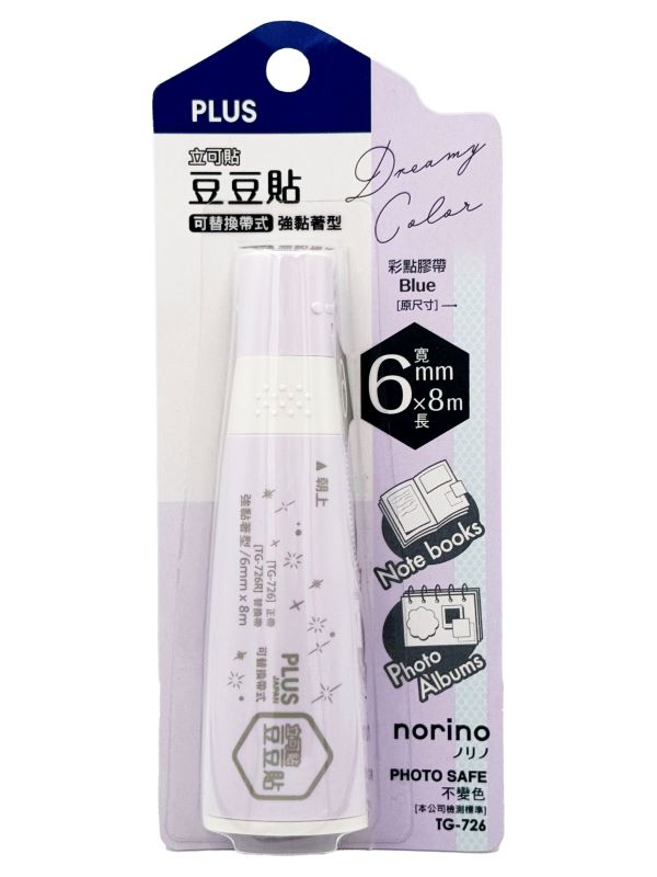 內容簡介 PLUS TG-726豆豆彩貼正帶 6mm 紫dreamy color豆豆貼,提供紙張及信封黏貼,4款限量顏色登場