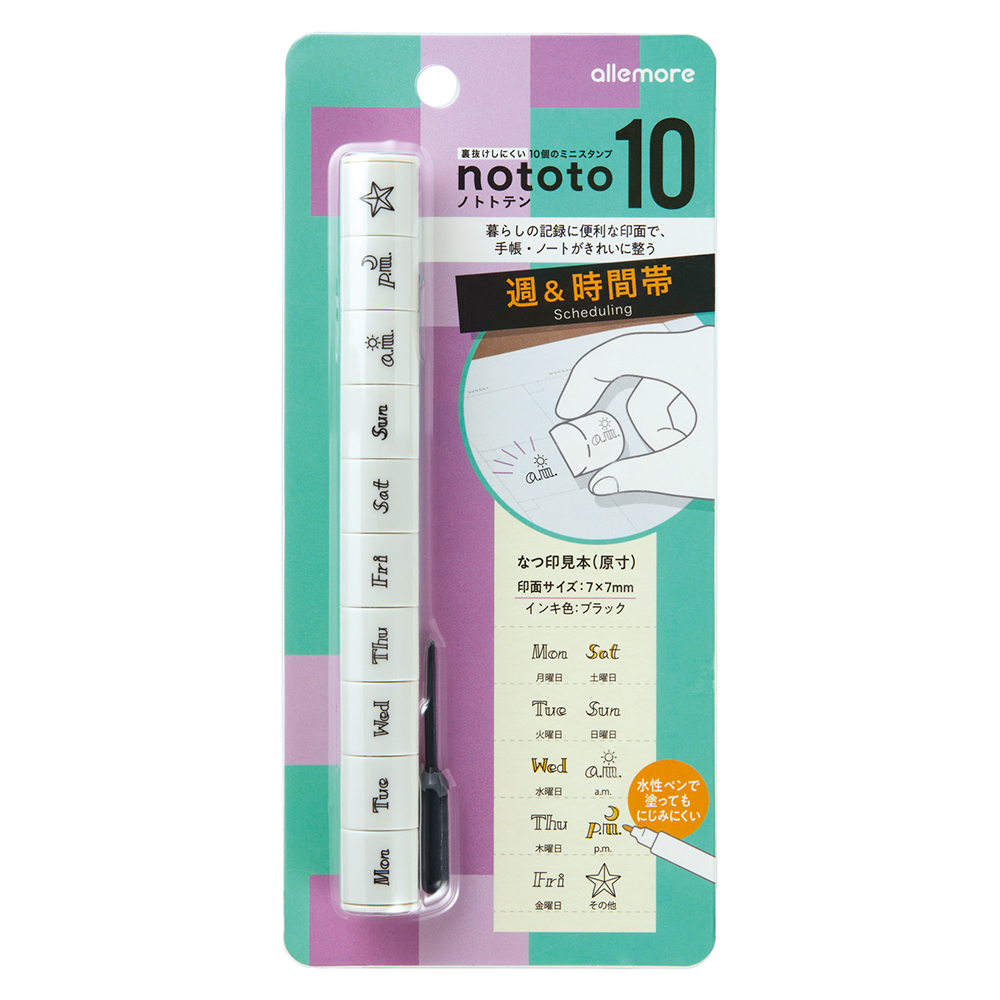 | 簡介 / | Shachihata nototo 10迷你手帳印章 週間:all+more=allmore擁有一切&享受更多Shachihata品牌新系列,傳達更親近、更便利及全方位的概念印章為油性墨水,使用水性筆繪材也不 |
