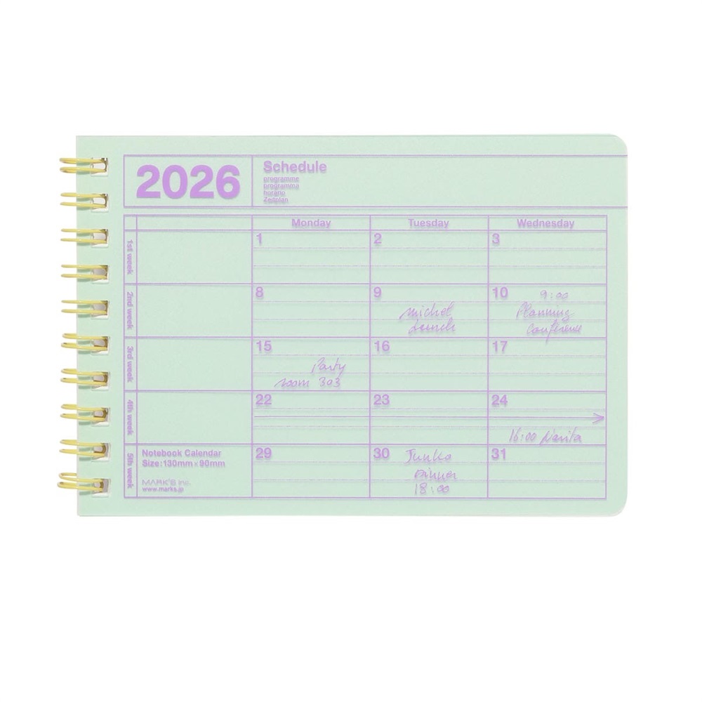 2026 日本 MARK'S 筆記本月曆 XS 薄荷綠