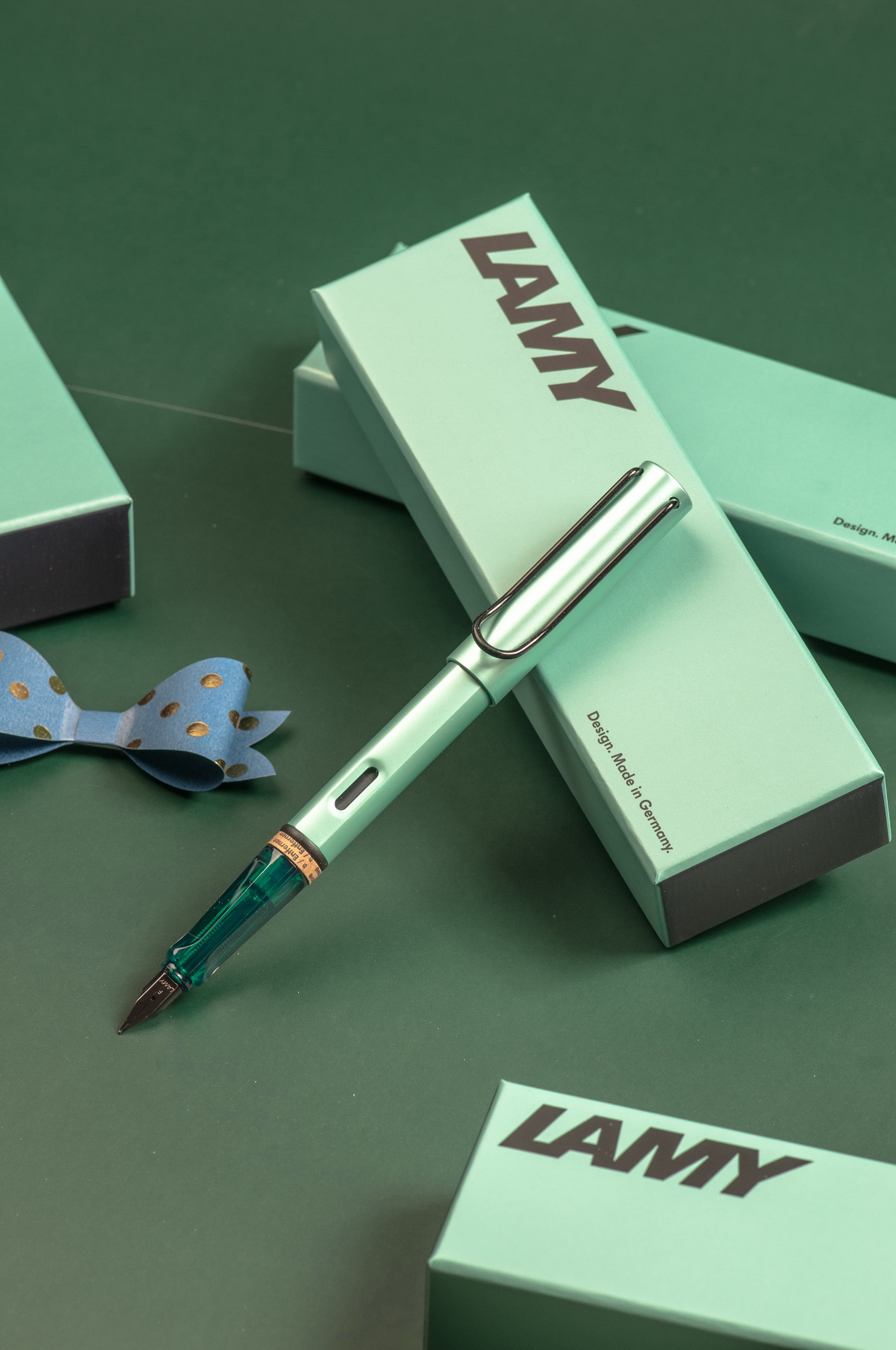 內容簡介 【LAMY AL-star恆星鋼筆 2025限量 Mint薄荷綠】薄荷綠色鋁合金烤漆筆身與筆蓋,黑色筆夾造型設計,筆蓋頂端為薄荷綠色,半透明薄荷綠色人體工學三角前端握把,使用黑色不鏽鋼筆尖,墨水辨識視窗-使用T10卡水或Z28吸水器2025 LAMY AL star 恆星系列 Mint & Dark dusk 薄荷綠色與深暮藍色 限量上市Our new LAMY AL-star Special Edition in mint & dark dusk brings fresh energy to every idea – whether you’re working remotely, exploring new places, or planning your next adventure.2025 LAMY AL star 恆星系列 special edition mint & dark dusk 薄荷綠色與深暮藍色系列,以同主色為設計概念,薄荷綠色搭配薄荷綠色前端握把,深暮藍色搭配深暮藍色前端,同色調元素搭配在金屬筆身,呈現出前衛鮮明的光澤感!2025 LAMY AL star 恆星系列 special edition mint & dark dusk 薄荷綠色與深暮藍色,其光澤質感的筆身是採用鋁金屬製成,呈現出絢麗的金屬效果,搭配黑色迴紋針筆夾,筆蓋頂端顏色與筆身同色調,鋼筆筆尖使用黑色不鏽鋼筆尖,人體工學三角握把前端使用綠色與藍色兩種色調的半透明設計,時尚色彩運用,為LAMY AL star 恆星系列 創造出另一種不同的魅力~深暮藍色:四種筆款:鋼筆/鋼珠筆/原子筆/自動鉛筆薄荷綠色:三種筆款:鋼筆/鋼珠筆/原子筆