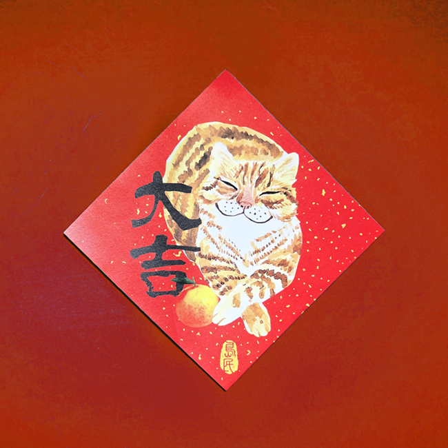 | 商品名 / | 島民金蔥彩春聯 斗方 大吉 橘貓 |