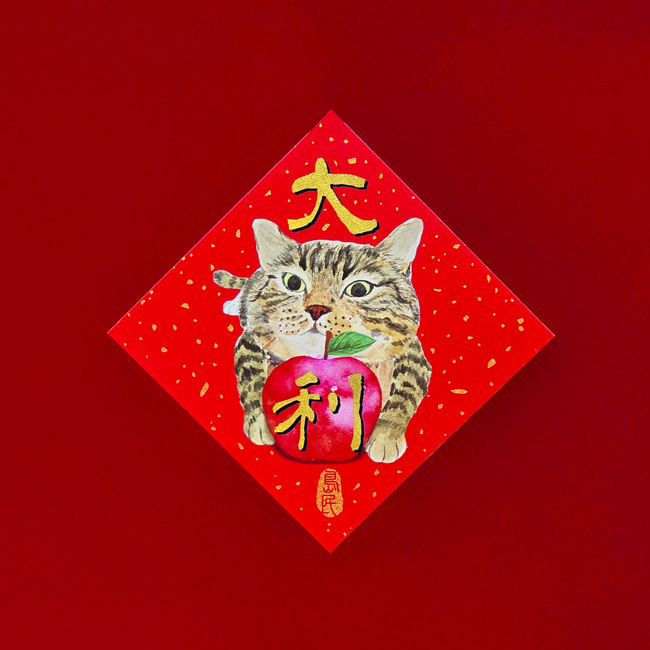| 簡介 / | 島民金蔥彩春聯 斗方 大利 貓:幽默生動的構圖,勾繪出新現代人生活願景,與時俱進的祝福與願望,搭配手工網版印刷細沙金箔,隱約的金箔顆沙閃爍感,更顯尊貴。為新年帶來 |