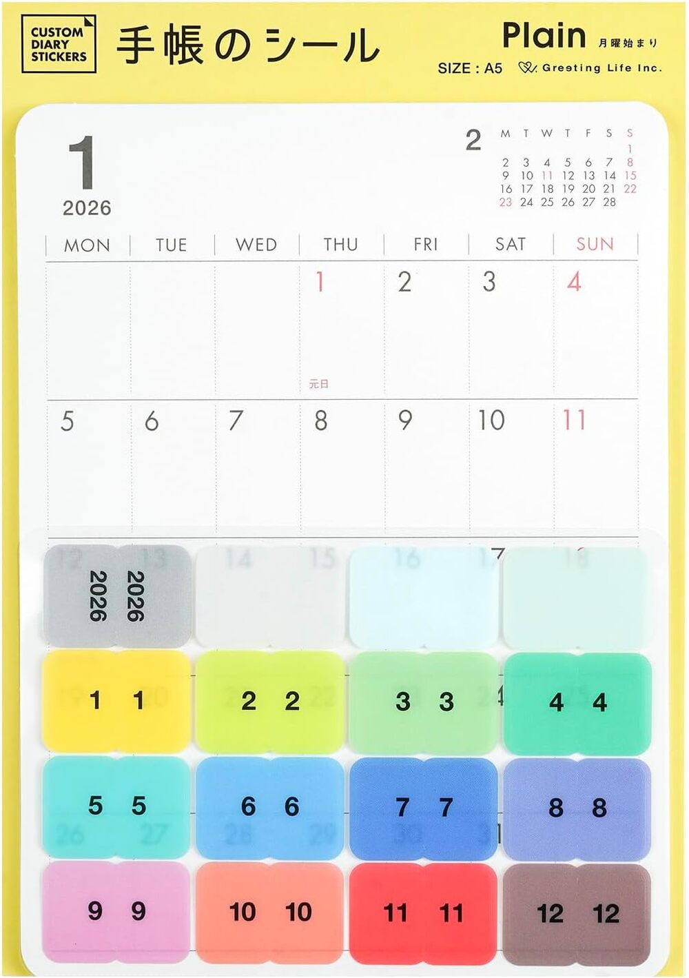 商品名 / | 2026 日本 Greeting Life Custom 月計畫標籤貼紙 Plain A5 |