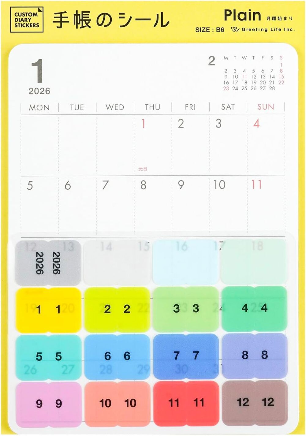 2026 日本 Greeting Life Custom 月計畫標籤貼紙 Plain B6